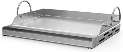 Solidna stal nierdzewna Plancha Koler została stworzona z wysokogatunkowej stali nierdzewnej o grubości 2 mm. Jej masywna konstrukcja o wadze 3 kg zapewnia równomierne rozprowadzanie ciepła oraz długą trwałość nawet przy intensywnym użytkowaniu. To praktyczne akcesorium pozwoli Ci przygotować śniadaniowe jajka i bekon, grillowane sery, warzywa, owoce morza czy soczyste burgery. Dzięki odczepianym uchwytom łatwo ją przeniesiesz i wygodnie przechowasz.
