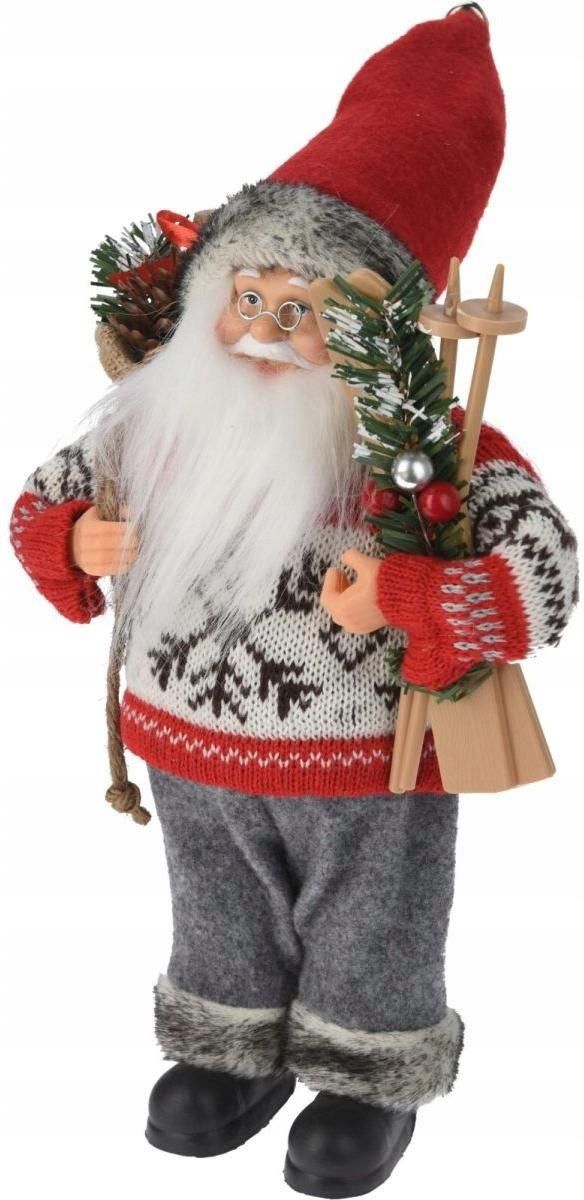 Koopman Mikołaj Świąteczny Dekoracyjny Stojący Deluxe 30Cm Szaro Czerwony (ATK000110) Oława