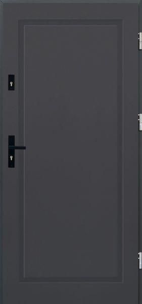 Drzwi wejściowe z kolekcji MARIO charakteryzuje się prostokątnym tłoczeniem na powierzchni skrzydła, wykończonym ramką PCV.