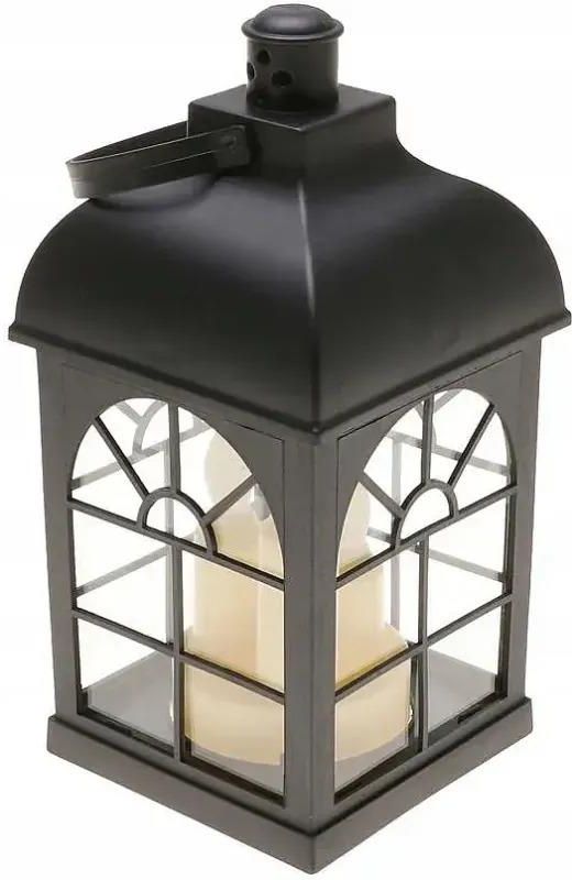 Lampion latarnia LED trzy świece czarna latarnia z uchem do wieszania Oława