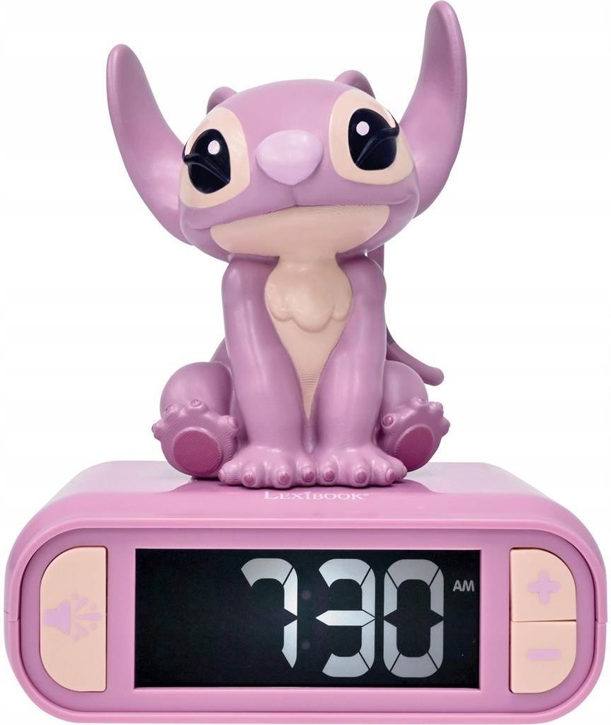 Disney Stitch Angel-cyfrowy budzik z lampką nocną 3D i efektami dźwiękowymi! Spraw, by Twoje dziecko chętnie rano wstawało z łóżka! * Super fajny budzik dla dzieci, który zacznie się świecić na kilka minut, gdy go naciśniesz. * Przyjazny dla snu ekran LCD z podświetleniem godziny. * Przycisk do odtwarzania zabawnych efektów dźwiękowych * Alarm z regulowaną głośnością i wyborem 6 dzwonków inspirowanych Disney Stitch. Idealny do płynnego przebudzenia. * Łatwy w użyciu: alarm można zatrzymać za pomocą prostego naciśnięcia górnej części podstawy zegara lub figurki. * Funkcja drzemki. EKRAN LCD PRZYJAZNY DO SNU - Wybierz pomiędzy wyłączeniem lub pozostawieniem ekranu LCD włączonego na noc, aby zapewnić spokojny sen taki, jaki lubi Twoje dziecko. WYGODNE ZASILANIE – Budzik posiada wskaźnik niskiego poziomu naładowania baterii, dzięki czemu nigdy nie przeoczysz żadnego alarmu. INTUICYJNE FUNKCJE - Łatwo wyłącz alarm, naciskając górną część budzika lub Stitcha. Skorzystaj z funkcji drzemki i zyskaj kilka dodatkowych minut snu. Specyfikacja * Zasilanie: 3 baterie AA / LR6 (brak w zestawie) ze wskaźnikiem niskiego poziomu baterii. * Wymiary: 13,5 x 9 x 18,2 (wys.) cm