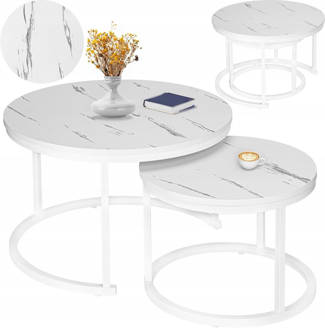 Loftinspired Zestaw Stolików Kawowych Galen Okrągły Biały Marmur Oława