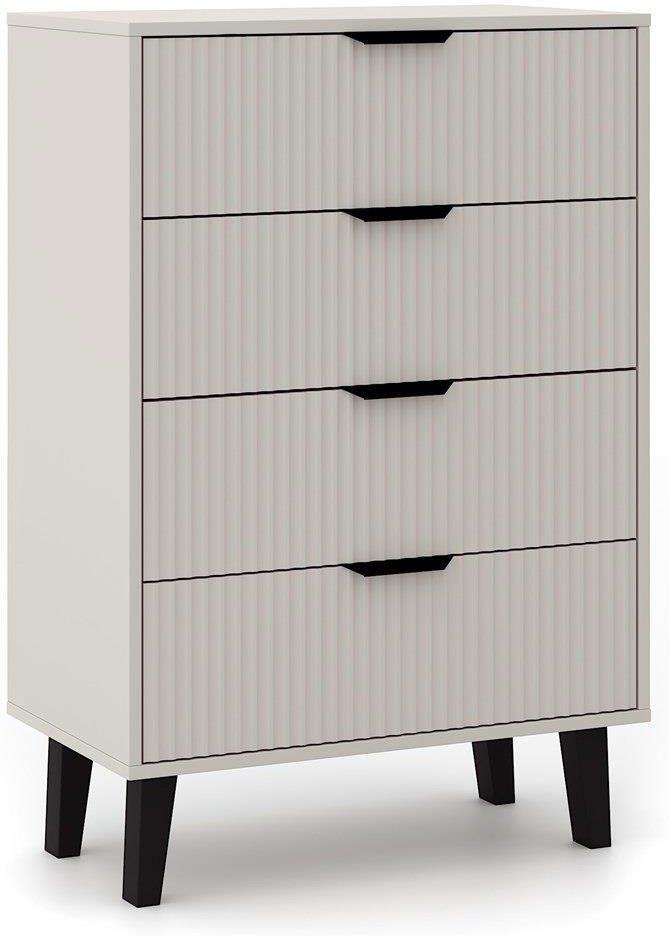 KOMODA SCANDI 4S SLIM Z 4 SZUFLADAMI NOWOCZESNY DESIGN Z RYFLOWANYM FRONTEM MODEL: SCANDI 4S SLIM KOLOR: KASZMIREkskluzywny i elegancki odcień beżu Komoda SCANDI 4S SLIM to idealna propozycja dla tych, którzy szukają praktycznego mebla do przechowywania z nutą nowoczesnego designu. Modny kolor …