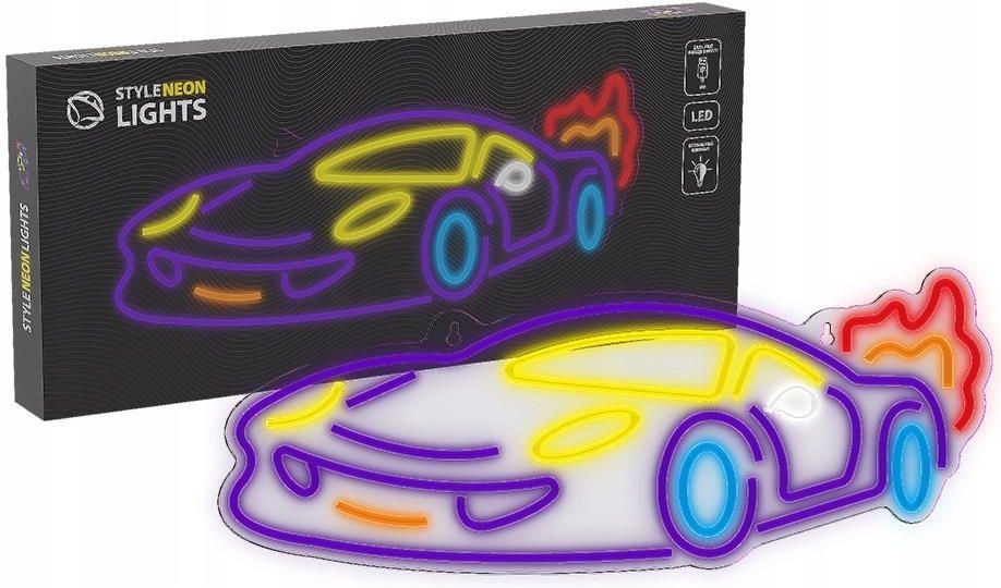 NEON LED na ścianę neony do pokoju SAMOCHÓD WYŚCIGOWY LAMPKA nocna flex Zastosowanie kolorowych przewodów LED - dzięki czemu kolor są bardziej intensywne, a neon pełni funkcje dekoracyjną, nawet gdy nie jest włączony Wygodne zasilanie przez USB – pozwala na podłączenie lampki do komputera, …