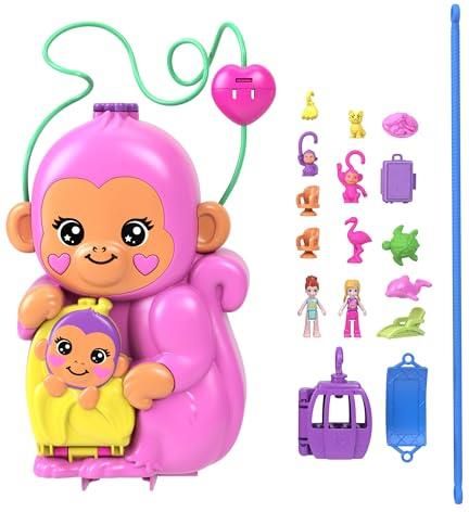 Mattel Polly Pocket Kompaktowa torebka Małpka Zestaw do zabawy z figurkami zwierzątek i akcesoriami, HWP04 Oława