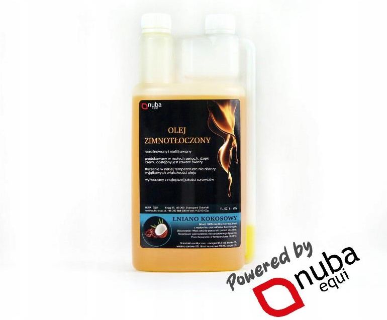 Olej Lniano Kokosowy 1L Zimnotłoczony Olej Dla Koni Nuba Equi Oława