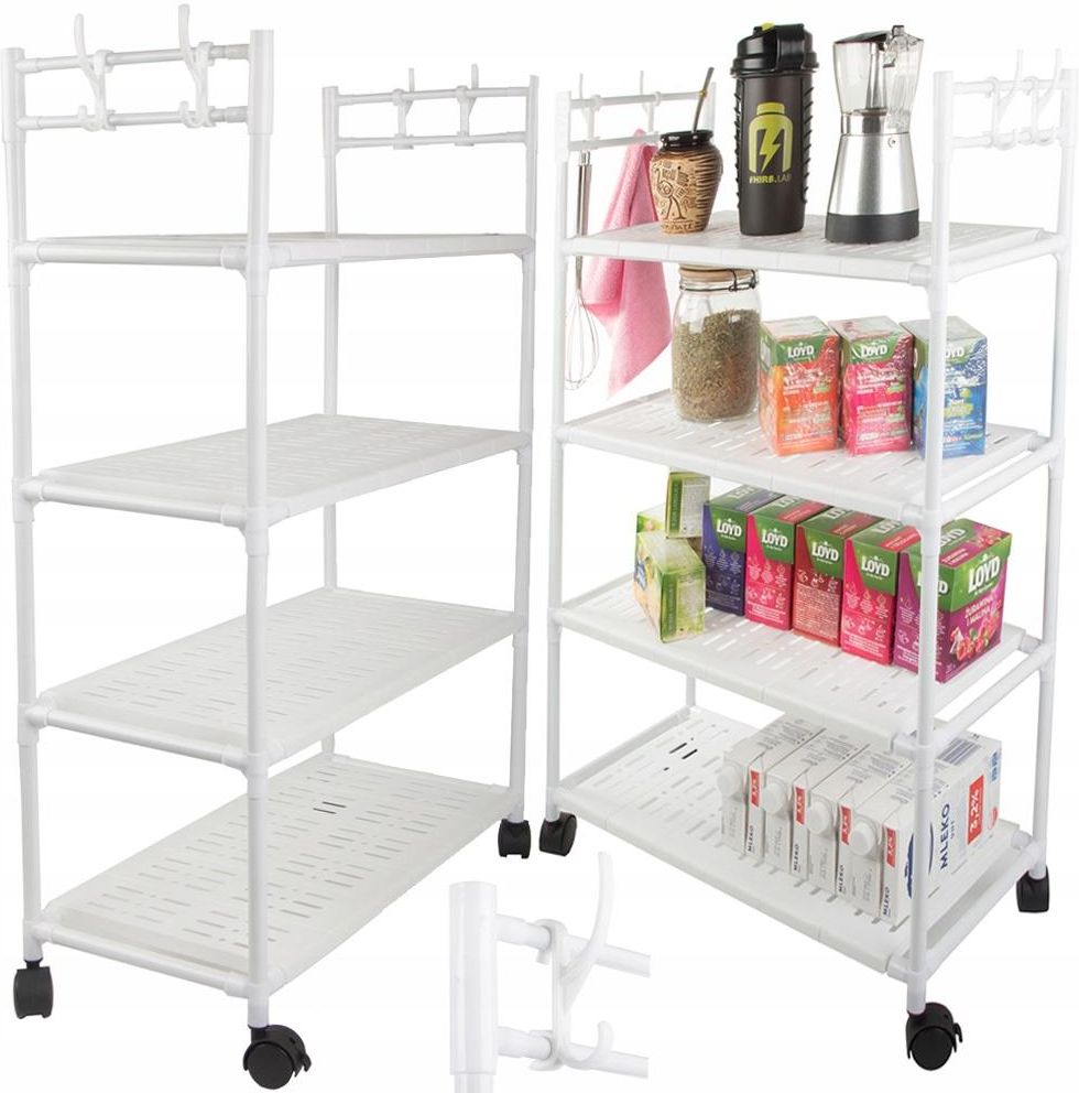 PÓŁKA ŁAZIENKOWA SZAFKA KUCHENNA REGAŁ MOBILNY NA KÓŁKACH 4 POZIOMY HACZYKI Oława