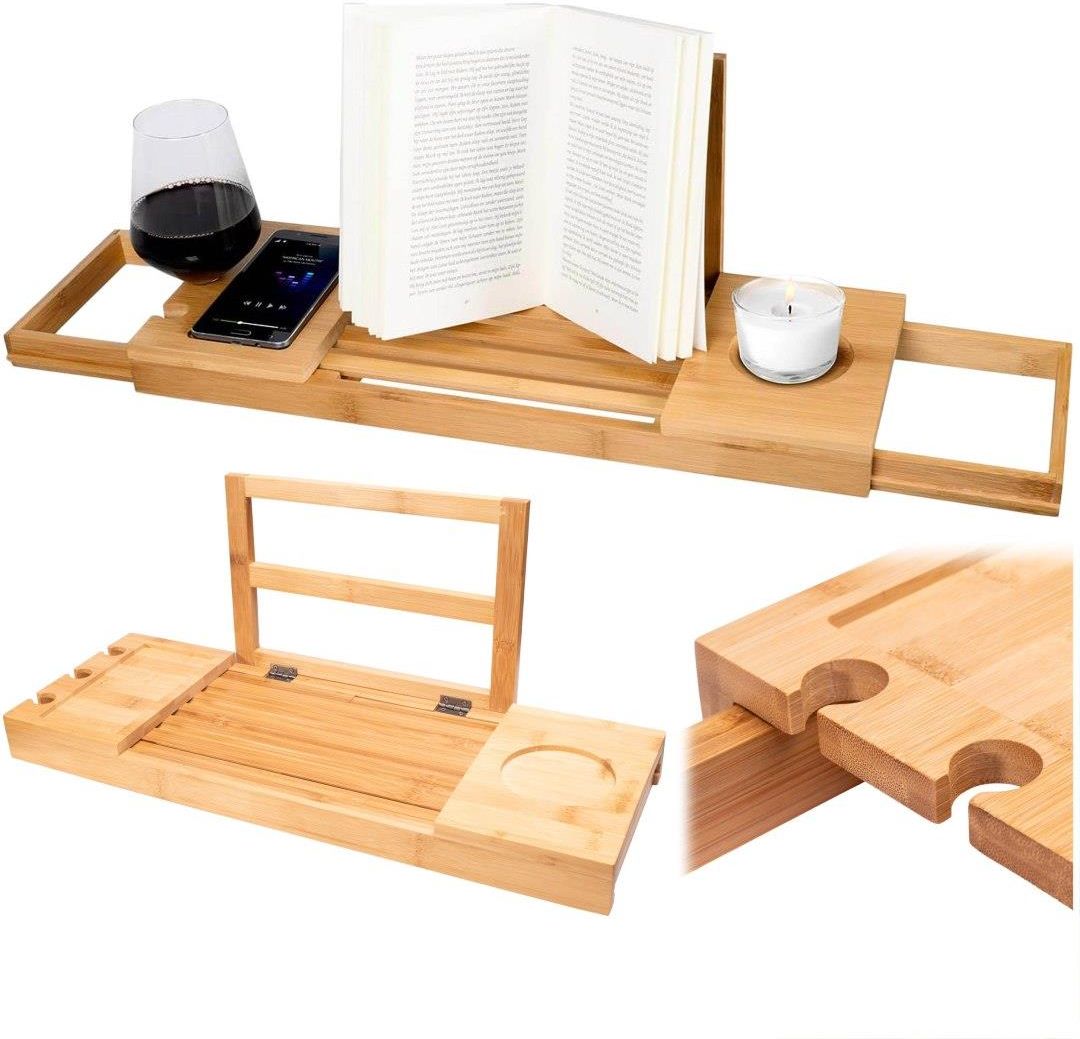 Półka na wannę DAFNE bambusowa Półka na wannę DAFNE bambusowa Przeznaczenie: łazienka | Kolory: naturalny bambus Starannie wykonana, ze 100% naturalnego bambusa. Zachwyci Cię jakością i dbałością o każdy detal. Jej najważniejsze cechy to dbałość o detale i perfekcja wykonania. Liczne uchwyty i półeczki pozwolą Ci w pełni zaznać uroków kąpieli i mieć wszystko na wyciągnięcie ręki. Dafne to wyjątkowa półka na wannę, która zapewnia wyjątkowe chwile odpoczynku podczas relaksacyjnej kąpieli. Romantyczny czas z lampką wina, świeczkami i muzyką a może film czy dobra książka? Twoja kąpiel może teraz wyglądać zupełnie inaczej. Półka wykonana jest ze 100% drewna bambusowego wysokiej jakości. Powierzchnia jest estetycznie wykończona z dbałością o najmniejsze detale. Posiada uchwyt na tablet, telefon, lampkę wina, dwie półki, miejsce na świeczkę oraz regulowaną szerokość, by dostosować ją do Twojej wanny. To wszystko po to by Twoja kąpiel była dla Ciebie wyjątkową chwilą wyciszenia i relaksu. Półka wannowa Dafne spełni oczekiwania nawet najbardziej wymagających klientów. Specyfikacja techniczna Wysuwana półka na wannę z bambusa Długość półki regulowana w zakresie: od 50 do 85 cm Materiał: Bambus Wymiary półki: 50x18x4 cm Wymiary po rozłożeniu: 85x18x4 cm Kolor półki na wannę: naturalny Dodatkowe atuty 3 uchwyty na kieliszek Wypij pyszny kieliszek wina, relaksując się w kąpieli! Nasz uchwyt na kieliszki do wina został zaprojektowany w taki sposób, że nie ma szans aby podczas kąpieli cokolwiek się rozlało. Niezastąpiona wygoda! Stojak na książki/ tablet Teraz możesz zagłębić się w lekturę książki lub obejrzeć swój ulubiony film na tablecie podczas kąpieli w wannie! Podpórka jest składana, a wyżłobienia u podstawy utrzymują bezpiecznie książkę lub tablet o średniej wielkości. Tacka na telefon Tacka na telefon zapewni bezpieczeństwo Twojego urządzenia podczas oglądania ulubionych seriali. Już nie będziesz musiał wskakiwać i wyskakiwać z wanny, gdy ktoś zadzwoni. Możesz słuchać muzyki, szukać lotów czy sprawdzać harmonogram pracy nie ruszając się z kąpieli! Uchwyt pozwala umiejscowić telefon zarówno pionowo jak i poziomo. Informacje dodatkowe Przedstawione kolory należy traktować poglądowo - mogą odbiegać od rzeczywistych ze względu na różne ustawienia monitorów oraz proces obróbki zdjęć. Rzeczywiste wymiary mogą się różnić od podanych wyżej. Tolerancja błędów może wynosić +/- 5%. Producent: Gockowiak Kod EAN: 5902340330050 Kolor: naturalny bambus Zakres regulacji: 50 - 85 cm Wysokość: 4 cm Szerokość: 18 cm Przeznaczenie: łazienka 0.2 kg.
