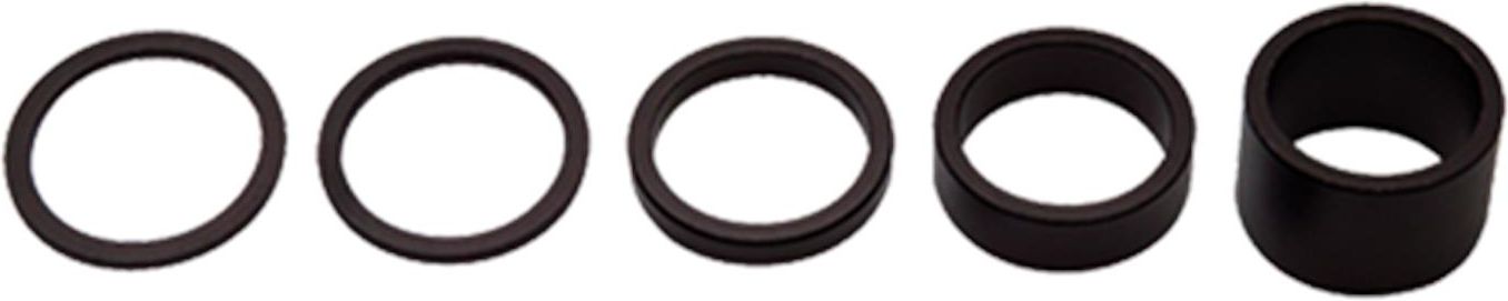 Pro podkładki sterów ahead Alu 2/2/5/10/20mm 1 1/8“ Zestaw podkładek dystansowych Pro 5 sztuk Typ rury sterowej: a-head Średnica: 1 1/8" Materiał: Aluminium Kolor: czarny Komplet zawiera 2szt x 2mm 1szt x 5mm 1szt x 10mm 1szt x 20mm
