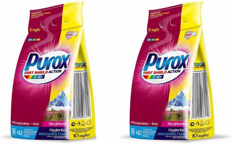 Proszek do prania Purox Color Zestaw 2 x 10 kg Proszek do prania Purox Color to uniwersalny środek skuteczny we wszystkich rodzajach prania. Doskonały również do prania ręcznego, wydajny i przyjazny środowisku. Uniwersalny i wygodny Proszek do prania Purox Color to uniwersalny produkt do prania stworzony zgodnie z niemieckimi standardami jakości. Doskonale sprawdzi się we wszystkich rodzajach prania – zarówno w mechanicznym, jak i ręcznym. Dzięki nowoczesnej formule jest bezpieczny dla tkanin kolorowych i doskonale sprawdzi się w praniu jasnych ubrań. Zalecany do usuwania średnich i lekkich zabrudzeń. Konieczność kupowania kilku produktów, aby wykonać pełne pranie wszystkich ubrań może być uciążliwa. Proszek do prania Purox Color to idealny środek dla konsumentów, którzy cenią wygodne rozwiązania. Jeden produkt, który skutecznie wypierze wszystkie rodzaje tkanin kolorowych i jasnych zarówno podczas prania mechanicznego, jak i ręcznego. To również wyjątkowo wydajny produkt, który wystarczy na dłużej. Bezpieczny i skuteczny Purox Color został stworzony w trosce o środowisko naturalne. Jego nowoczesna formuła nie zawiera zeolitów i fosforanów, ponieważ są to składniki trudno biodegradowalne i szkodliwe dla biologicznej różnorodności rzek i jezior. Produkt jest polecany dla wszystkich konsumentów, którzy troszczą się o piękna przyrody i korzystają ze środków przyjaznych środowisku. Proszek zawiera też składniki chroniące pralkę i grzałkę przed osadzaniem się kamienia, dzięki czemu nie ma potrzeby stosowania odkamieniacza. Wpływa to bezpośrednio na żywotność i bezawaryjność pralki. Wyjątkowo wydajny Proszek do prania Purox Color to wydajny i ekonomiczny produkt. 10 kg proszku pozwala na wykonanie aż 142 prań! Wybór Purox Color pozwoli dłużej cieszyć się wygodnym, skutecznym praniem, a także zaoszczędzić pieniądze, ponieważ produkt jest przyjazny dla domowego budżetu. Proszek do prania Purox Color – właściwości: bez zeolitów i fosforanów, wydajny i skuteczny, usuwa lekkie i średnie zabrudzenia, idealny do tkanin kolorowych, spełnia niemieckie standardy jakości, pielęgnuje kolor na dłużej.