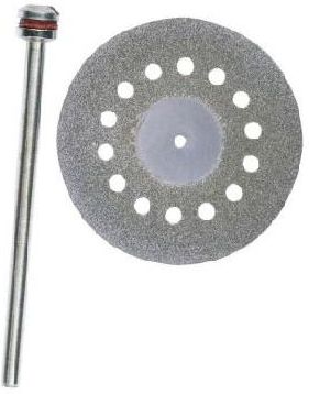 TARCZA TNĄCA 20 MM PROXXON DIAMENTOWA PERFOROWANA Tarcza diamentowa perforowana firmy Proxxon, Służy do cięcia, polerowania oraz okrawania porcelany, ceramiki, szkła, włókna szklanego. Otwory w tarczy zmniejszają nagrzewanie się materiału podczas pracy Dane techniczne Średnica trzpienia: 2,35mm Średnica tarczy: 20mm