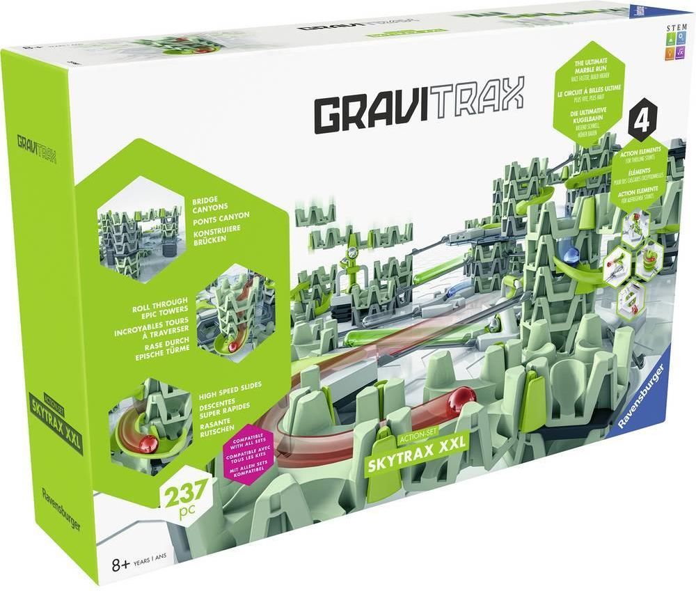 Ravensburger 25960 GraviTrax - Action-Set XXL Skytrax GraviTrax - Zestaw akcji XXL Skytrax Zestaw klocków GraviTrax XXL Skytrax otwiera nowe możliwości i zapewnia spektakularną zabawę w budowanie dzięki ekscytującym funkcjom i ogromnemu wyborowi elementów konstrukcyjnych! Z zestawem klocków …