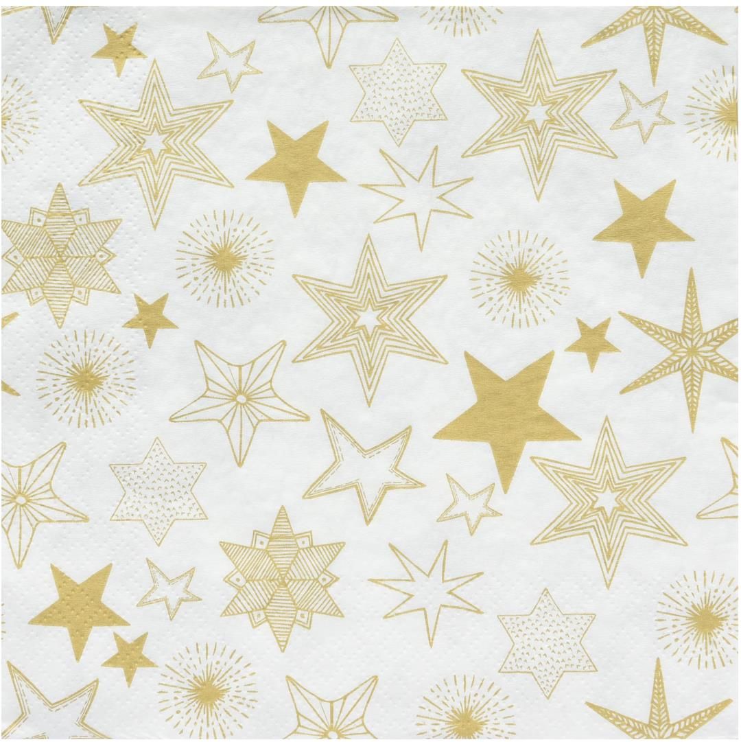 Serwetka na Boże Narodzenie złote gwiazdki Serwetki papierowe 3 - warstwowe Rozmiar - 33 x 33 cm Pakowane po 20 szt