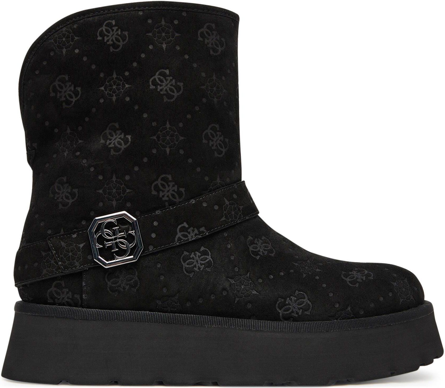 Guess Damskie Śniegowce FLFDOLESU10 Czarny Dodaj do swojej zimowej garderoby styl i funkcjonalność dzięki śniegowcom marki Guess! Wykonane z materiału tekstylnego, buty te łączą nowoczesny design z wygodą noszenia. Wsuwana konstrukcja ułatwia zakładanie i zdejmowanie, a gruba podeszwa zapewnia doskonałą izolację od zimnego podłoża oraz stabilność na każdej nawierzchni. To wyjątkowy wybór dla kobiet, które cenią sobie komfort i modny wygląd w chłodne dni. Śniegowce Guess to idealne uzupełnienie zimowych stylizacji oraz niezastąpiony towarzysz podczas zimowych spacerów!