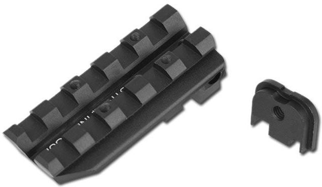 Strike Industries Szyna montażowa Mount G17/18 GSR Strike Industries Szyna montażowa Rear Sight Mount zgodna ze standardem Picatinny, przeznaczona do pistoletu Glock. Wyprodukowana została przez amerykańską firmę Strike Industries. Montowana w tylnej części zamka szyna charakteryzuje się bardzo niską wagą oraz wytrzymałą konstrukcją. W zestawie znajduje się tylna płytka zamka Back Plate Locking System służąca do zamocowania szyny oraz pozwalająca na regulację położenia szyny w pionie. Rear Sight Mount posiada odpowiedni prześwit pozwalający na spełnianie funkcji standardowej szczerbinki w sytuacji gdy nie używamy kolimatora. Po bokach prześwitu znajdują się dwa zagłębienia które można dodatkowo pomalować. Do szyny można zamontować sprzedawaną osobno dźwignię przeładowania (GSR-CH) firmy Strike Industries. W sytuacjach awaryjnych szyna może zostać użyta do przeładowania broni. Cechy: - Aluminiowa konstrukcja, waga jedynie 20g - Tylna płytka z otworem na śrubę w zestawie - Możliwość stosowania jako standardowa szczerbinka - Możliwość montażu dodatkowej dźwigni przeładowania - W zestawie szyna, płytka, śruba montażowa oraz śruby do regulacji wysokości Specyfikacja: - Długość: 54 mm - Szerokość: 25,5 mm - Waga: 20g