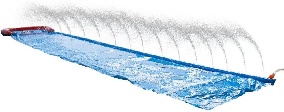Ślizg wodny pojedynczy to wspaniała zabawa w ogrodzie, gdzie dziecko może ślizgać się na zmianę ze swoim rodzeństwem i przyjaciółmi. Wystarczy podłączyć wąż ogrodowy do zjeżdżalni, by cieszyć się zabawą. Wbudowane spryskiwacze zapewniają efekt kaskady i utrzymują śliską powierzchnię toru.