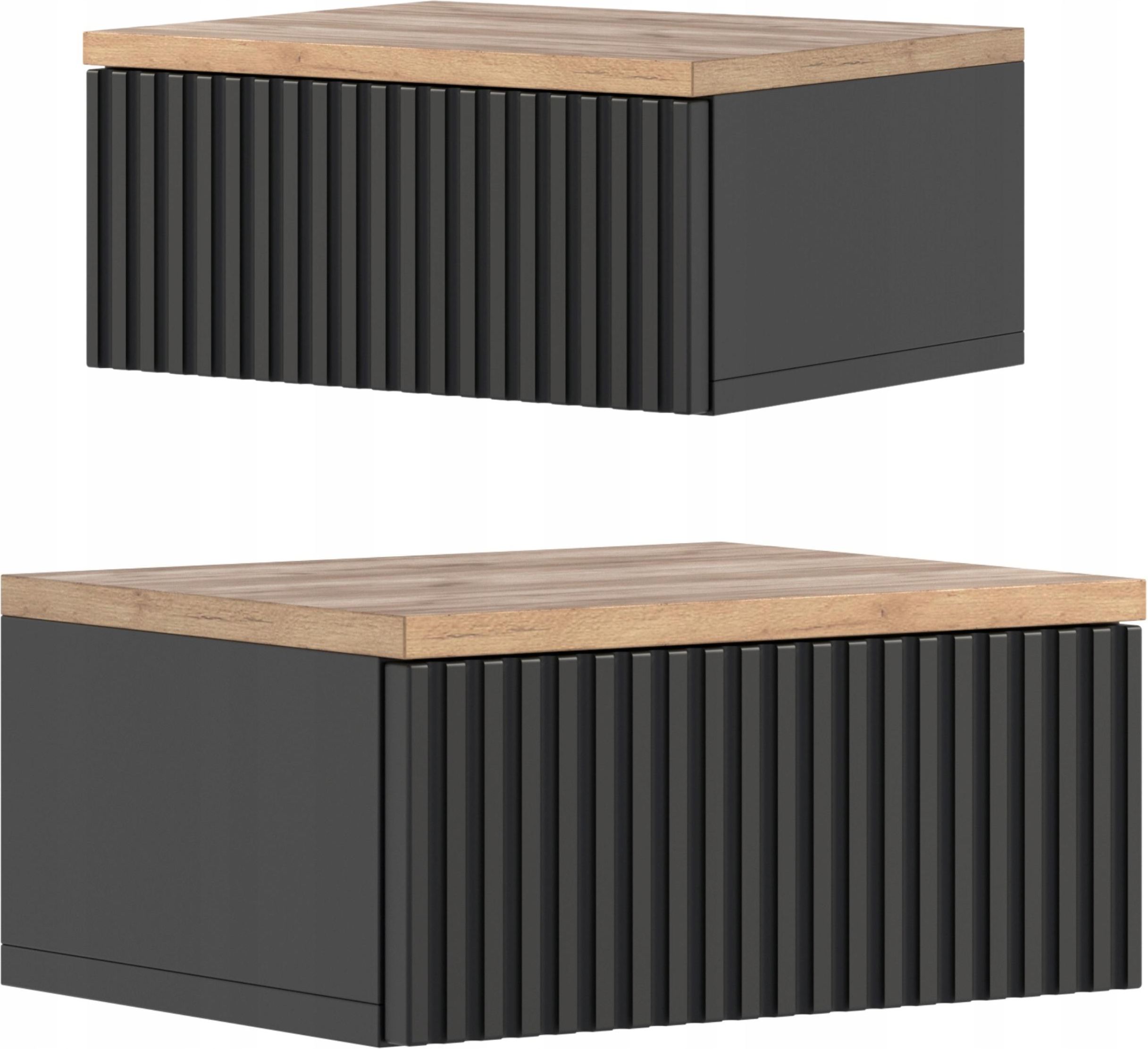 Szafka Nocna Wisząca Czarna+Dąb Craft do Sypialni Stolik Nocny Ryflowana Oława