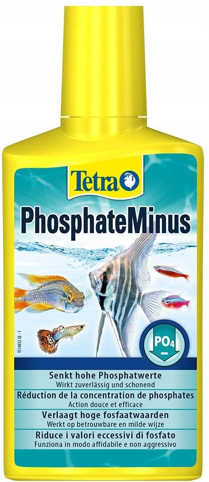 Tetra PhosphateMinus Redukuje wysokie stężenia fosforanów (PO4) w niezawodny i naturalny sposób - zapobiega możliwości wzrostu niechcianych roślin. Stabilizacja parametrów wody Zmniejszenie poziomów fosforanów Zapobieganie rozwojowi glonów Charakterystyka preparatu: W niezawodny sposób redukuje wysokie stężenia fosforanów  Działanie szczególnie delikatne i naturalne, dzięki obecności mikroorganizmów w akwarium  Działa delikatnie i bezpiecznie dla wszystkich mieszkańców akwarium  Nie powoduje mętnienia wody i nie pozostawia żadnych osadów na podłożu  Preparat odpowiedni dla miękkiej wody (minimalne KH niewymagane)  Zbyt duża ilość fosforanów powoduje rozwój niepożądanych roślin. Dodatkowe informacje Tetra PhosphateMinus niezawodnie usuwa nadmiar fosforanów (PO4) z akwarium. Fosforany przez cały czas gromadzą się w akwarium, ponieważ są wytwarzane przez rozkład substancji organicznych, takich jak niezjedzony pokarm, odpady rybne lub obumarła flora. Jest to całkowicie naturalny proces w akwarium. Niemniej jednak, także parametry wykorzystywanej wody z kranu mają wpływ na wartość PO4. Fosforany są niezbędne dla zwierząt i roślin w akwarium, ponieważ odgrywają ważną rolę w wielu procesach biochemicznych, takich jak fotosynteza roślin. Niemniej jednak, zbyt duża ilość fosforanów w akwarium (powyżej dwóch miligramów na litr) powoduje rozwój niepożądanych roślin. Ponadto, nadmiar tego składnika odżywczego może mieć niekorzystny wpływ na jakość wody. Wartość PO4 powinna więc być jak najniższa (mniej, niż dwa miligramy na litr). Tetra PhosphateMinus usuwa nadmiar fosforanów w niezawodny i naturalny sposób (do dwóch miligramów na litr po użyciu zalecanej dawki). Główną zaletę tego preparatu stanowi fakt, że nie powoduje on mętnienia lub pogorszenia jakości wody w akwarium i nie pozostawia żadnych osadów na podłożu. Jego substancja czynna, którą jest organiczny związek żelaza, ulega powolnemu rozkładowi w sposób całkowicie naturalny. Zostaje ona całkowicie rozłożona biologicznie przez mikroorganizmy w czasie zaledwie 48 godzin i może zostać wchłonięta oraz usunięta przez filtr akwarium razem z pozostałościami fosforanów. W związku z powyższym, filtr powinien być systematycznie czyszczony, aby zapewnić prawidłowe usuwanie z ekosystemu akwarium wszystkich fosforanów, które uległy rozkładowi. Tetra PhosphateMinus w niezawodny sposób redukuje wartość PO4, niezmieniając twardości węglanowej wody (KH). W związku z powyższym, preparat jest odpowiedni dla akwariów z miękką wodą. Dzięki temu Tetra PhosphateMinus to niezawodny preparat, bezpieczny dla wszystkich mieszkańców akwarium.