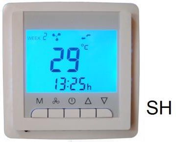 Sterowniki rekuperatorów służą do programowania wydajności rekuperatorów w funkcji czasu. W zależności od wybranego modelu, sterowniki mogą posiadać również dodatkowe funkcjonalności: - regulacja temp. nawiewanego powietrza (współpraca z nagrzewnicami elektrycznymi, nagrzewnicami wodnymi, gwc) - współpraca z zewnętrznymi czujnikami (temperatury, wilgotności CO2) - funkcje alarmowe SH: Realizowane funkcje: - możliwość automatycznego załączania 3 różnych biegów, - manualne wyłączanie wentylatorów, - możliwość zaprogramowania sześciu programów czasowych dla całego tygodnia, - oddzielny program weekendowy, - manualne wyłączanie wentylatorów, - pomiar temperatury otoczenia, - funkcja sygnalizacji przeglądu filtrów, Dedykowane do rekuperatorów: - ZWC-B - B3B SH-B Realizowane funkcje: - możliwość automatycznego załączania 3 różnych biegów, - manualne wyłączanie wentylatorów, - możliwość zaprogramowania sześciu programów czasowych dla całego tygodnia, - oddzielny program weekendowy, - manualne wyłączanie wentylatorów, - pomiar temperatury otoczenia, - funkcja sygnalizacji przeglądu filtrów, Dedykowane do rekuperatorów: - ZWC-4(R), ZWC-5(R), ZWC-6(R) SH-E Realizowane funkcje: - możliwość automatycznego załączania 3 różnych biegów, - manualne wyłączanie wentylatorów, - możliwość zaprogramowania sześciu programów czasowych dla całego tygodnia, - oddzielny program weekendowy, - manualne wyłączanie wentylatorów, - pomiar temperatury otoczenia, - funkcja sygnalizacji przeglądu filtrów, Dedykowane do rekuperatorów: - ZWC EC-1V, ZWC EC-1H SVD-A Realizowane funkcje: - kolorowy wyświetlacz z panelem dotykowym, - sterowanie rekuperatorami 3-biegowymi lub 4-biegowymi (silniki AC), - możliwość programowania czasowego 4 różnych biegów, - programowanie biegów rekuperatora dla każdego dnia tygodnia z dokładnością do 1h (24 programy czasowe dla każdego dnia) - obsługa nagrzewnicy wstępnej typu C+ oraz T z utrzymaniem stałej temperatury, - obsługa siłownika przepustnicy GWC, - funkcja ogrzewanie/chłodzenie (przy współpracy z GWC) - komunikaty alarmowe - współpraca z zewnętrznymi czujnikami dwustanowymi np. termostatem, higrostatem itp. - obsługa nagrzewnicy wtórnej z regulatorem 0-10V (elektrycznej typu NG-X lub wodnej typu NG-W) W skład zestawu wchodzi: - moduł wykonawczy, -dotykowy panel ścienny - przewód komunikacyjny UTP, - 3 czujniki kanałowe, - rejestracja i wizualizacja temperatur z ostatnich siedmiu dni - możliwość wyposażenia sterownika w moduł komunikacji ethernetowej Ekran o przekątnej 3.2" pozwala w czytelny sposób wyświetlić wszystkie parametry procesu odzysku ciepła. Obsługa sterownika jest bardzo intuicyjna i oparta na ikonach. W wersji rozszerzonej można zainstalować moduł komunikacji ethernetowej, pozwalający na połączenie się ze sterownikiem poprzez łącze internetowe. Specjalna aplikacja wyświetla na ekranie przeglądarki internetowej aktualne parametry sterowania oraz umożliwia ich zdalną zmianę. Połączenie ze sterownikiem chronione jest hasłem, które użytkownik ustala i wpisuje w panelu konfiguracyjnym sterownika. Dedykowane do rekuperatorów: - ZWC-B; - ZWC-D; - B3B