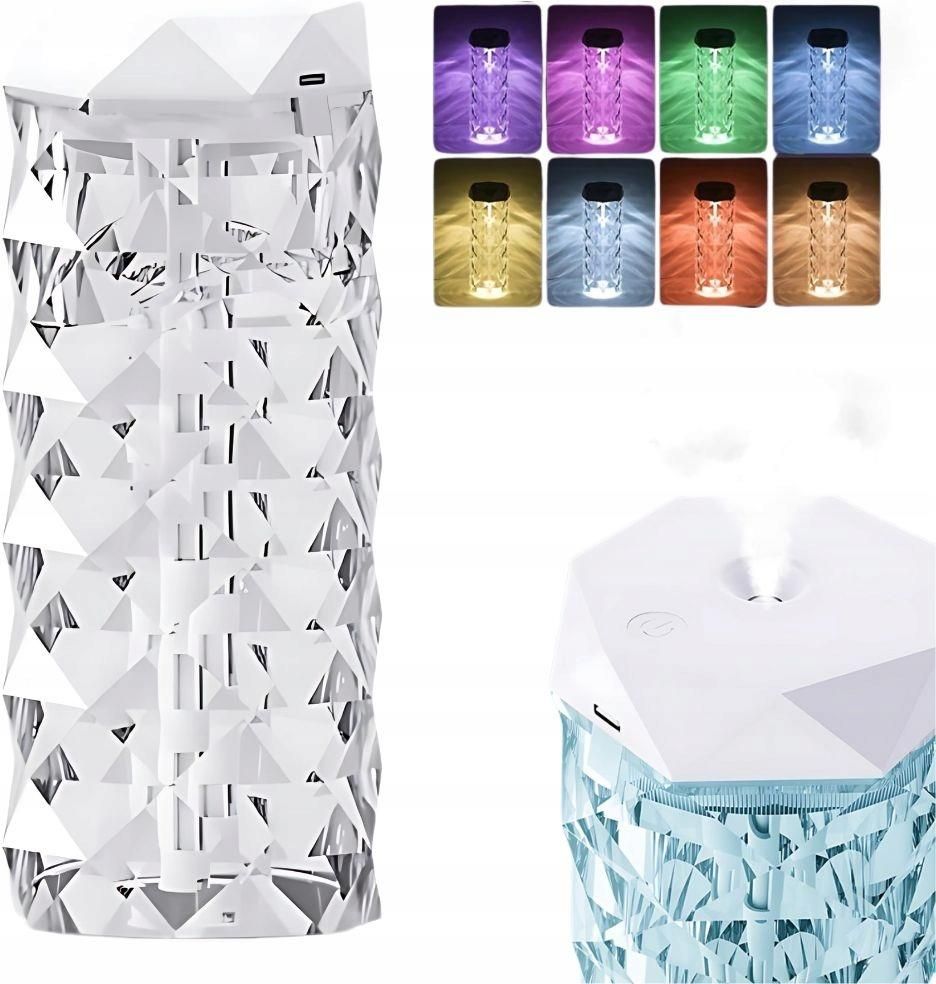 NAWILŻACZ POWIETRZA DYFUZOR ZAPACHOWY AROMATERAPIA MGIEŁKA USB RGB KRYSZTAŁ Elegancki nawilżacz powietrza z funkcją dyfuzora zapachowego to doskonałe urządzenie do poprawy jakości powietrza w Twoim domu lub biurze. Dzięki funkcji mgiełki skutecznie nawilża powietrze, poprawiając komfort oddychania, szczególnie w sezonie grzewczym. Dodatkowa opcja aromaterapii pozwala cieszyć się ulubionymi olejkami zapachowymi, tworząc relaksującą atmosferę. Nawilżacz zasilany jest przez port USB-C, co czyni go wygodnym i mobilnym. Kryształowy design z podświetleniem RGB dodaje wnętrzu nowoczesnego i stylowego akcentu. Możliwość zmiany kolorów światła tworzy przytulny klimat, idealny do relaksu, medytacji czy wieczornego odpoczynku. Kompaktowe wymiary sprawiają, że urządzenie doskonale sprawdzi się w każdym pomieszczeniu. To wszechstronny nawilżacz, który łączy w sobie funkcjonalność, estetykę i praktyczność. Idealny wybór dla osób, które chcą zadbać o zdrowe powietrze, jednocześnie wprowadzając do swojego otoczenia odrobinę luksusu i harmonii. SPECYFIKACJA TECHNICZNA: ✅ Kod produktu: 24543 ✅ Funkcje: nawilżanie, aromaterapia ✅ Wysoka jakość wykonania ✅ Bardzo cichy ✅ Podświetlenie RGB ✅ Posiada tryb nocny ✅ Nowoczesny wygląd ✅ Łatwy w napełnianiu ✅ Pojemność: 1000ml ✅ Automatyczne wyłączanie: po ok 4/6h ✅ Zasilanie: USB 5V 2A (nie działa bezprzewodowo) ✅ Długość kabla USB: 70cm ✅ Wymiary: 21cm x 8,5cm ✅ Kolor: biały ✅ Produkt posiada certyfikat CE ZESTAW ZAWIERA: ☑️ Fabrycznie nowy nawilżacz powietrza ☑️ Kabel USB ☑️ Oryginalne opakowanie