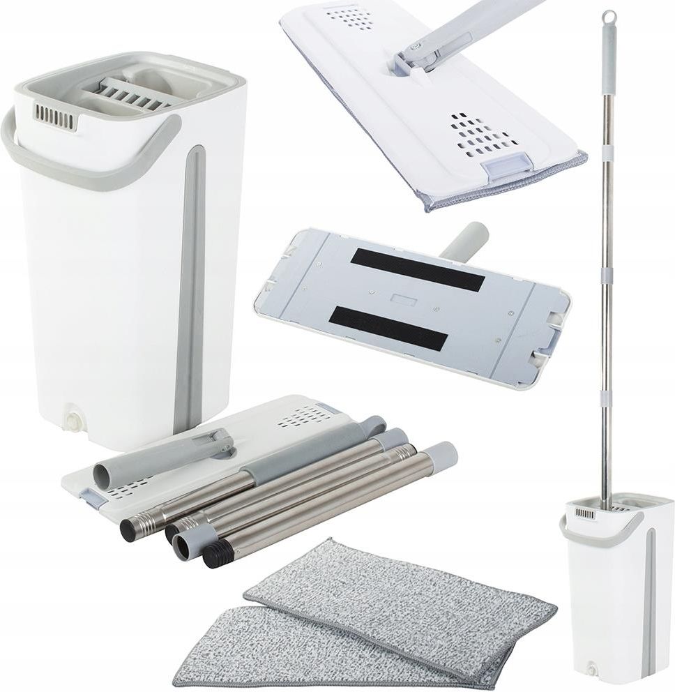 Mop płaski obrotowy z wyciskaczem i wiaderkiem Mop to rewelacyjne urządzanie do sprzątania. Jest niezwykle lekki, poręczny i wygodny w użyciu. Idealnie nadaje się do mycia wszystkich rodzajów podłóg. Dzięki swojej konstrukcji dotrze do najbardziej odległych zakamarków w twoim domu. Cechy produktu Wyciskanie wkładu mopa z wody możliwe jest bez brudzenia i moczenia rąk Wiadro posiada dwie komory - na wodę czystą i brudną 2 x Wkład z mikrofibry w zestawie -o wymiarach 32x12cm Nadaje się zarówno do podłóg drewnianych, paneli, płytek, podłóg kamiennych, linoleum i marmuru Elastyczne złącze zapewnia dotarcie w najtrudniej dostępne miejsca Nie pozostawia smug Efektywne i skuteczne wyciskanie mopa bez chlapania Drążek teleskopowy z możliwością zawieszenia o długości 120cm Kompaktowe wiaderko, dzięki czemu mop zajmuje bardzo mało miejsca, co jest znaczną zaletą zwłaszcza w niewielkich łazienkach. Wiadro o pojemności 2x 4,5L Specyfikacja techniczna: Minimalna wysokość mopa z drążkiem: 80 cm Długość drążka po rozłożeniu 120 cm Wymiary wkładu z mikrofibry: 32 cm x 12 cm Wymiary wiadra: 37,5 cm x 23,5 cm x 19,5 cm Dostępne kolory: BEŻOWY Zawartość zestawu: Wiadro dwukomorowe z nakładką do odsączania Drążek teleskopowy 120 cm Stopa 2 x wkład z mikrofibry