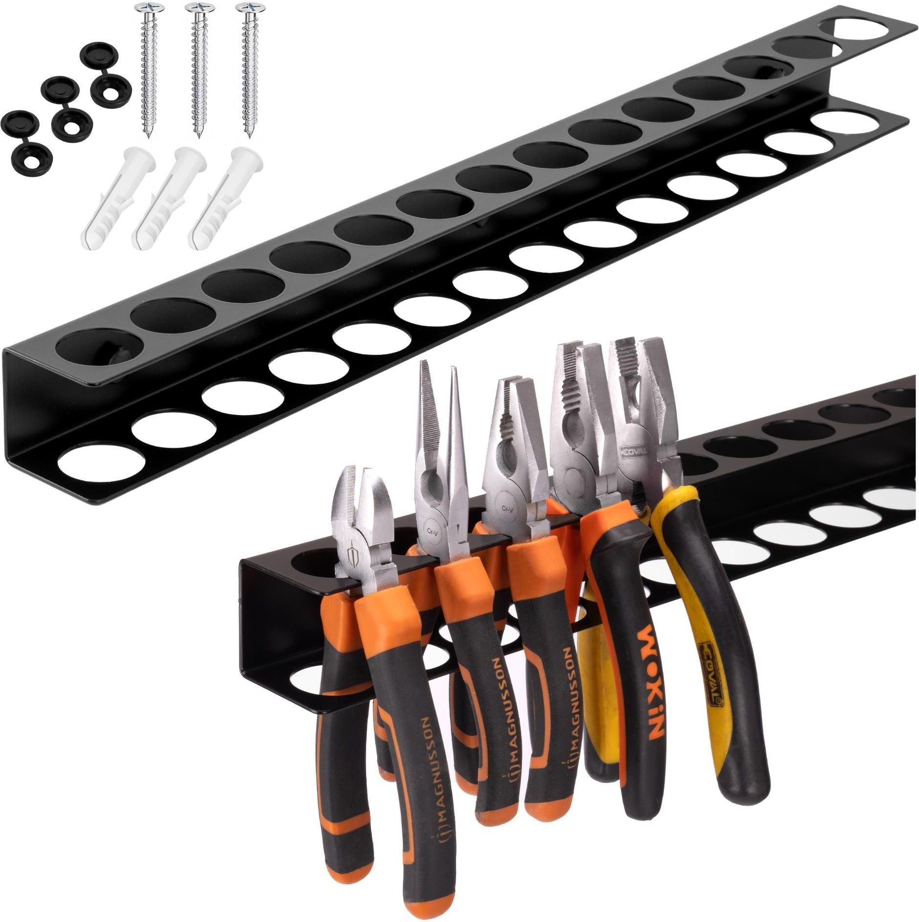 WIESZAK NA NARZĘDZIA SZCZYPCE KOMBINERKI WARSZTATOWY CZARNY UCHWYT LISTWA Szerokość 50 cm 17 miejsc na narzędzia Solidna konstrukcja ze stali Obciążenie do 8 kg Kołki montażowe w zestawie Wieszak na narzędzia NITRO – porządek w warsztacie na wyciągnięcie ręki Kolor: czarny Wieszak na narzędzia …