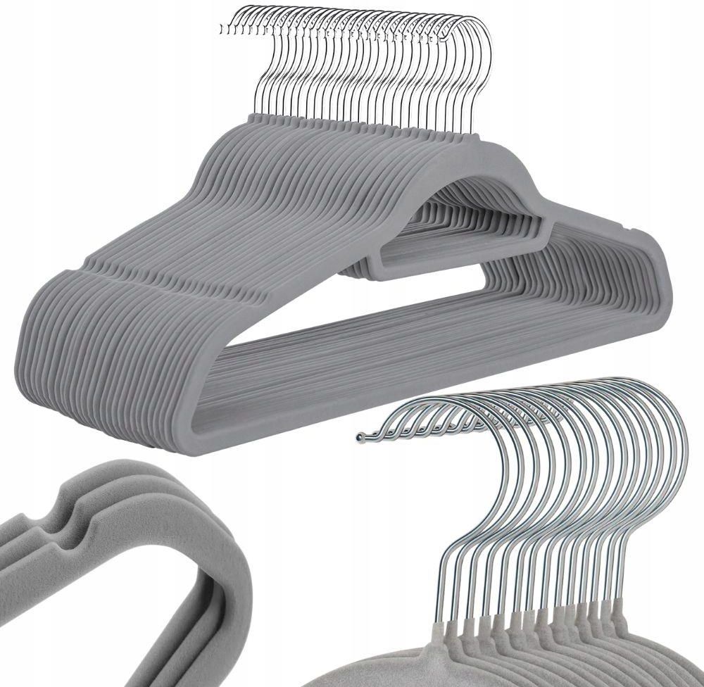 WIESZAKI WELUROWE NA UBRANIA WIESZAK SZARY ANTYPOŚLIZGOWE KOMPLET 20 SZTUK Oława