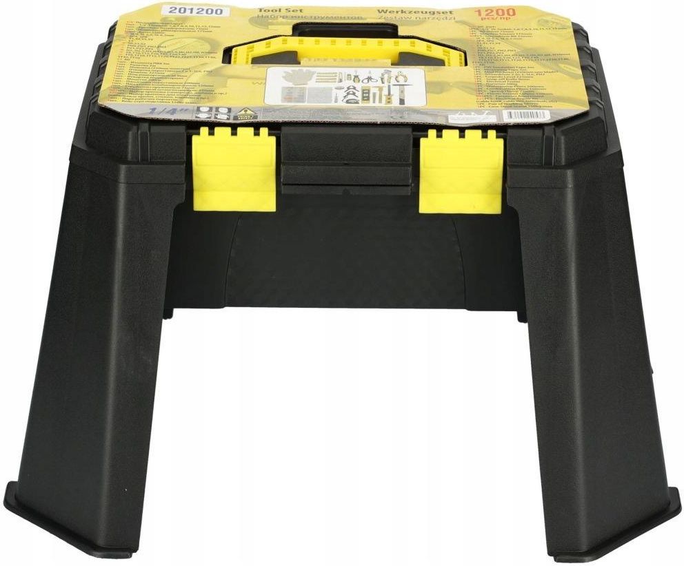 Zestaw zawiera: • Nasadki 9szt. 1/4": 5,6,7,8,9,10,11,12,13 mm; • Uchwyt do bitów- 75 mm; • Nożyczki uniwersalne 175 mm; • Bity 25mm 48 szt.: • SL 4, SL 5.5, SL 6.5 mm • SP4, SP6; • Y1,Y2,Y3,Y4; • C1 S0,S1,S2; • PH0,PH1,PH2,PH3; • PZ1,PZ2,PZ3; • H2, H2.5,H3,H4,H5,H5.5,H6,H7,H8, H10mm; • T8,T10,T15,T20,T25,T30,T40; • TT8,TT10,TT15,TT20,TT25,TT27,TT30,TT40, TT45,TT50 AD; • Taśma izolacyjna PVC 3m; • Miara zwijana 3 m; • Piła do metalu (ostrze 250 mm); • Wkrętaka Śrubokręt nastawny 2 w 1: SL6, PH2; • Poziom stopu 225 mm; • Nóż 9mm; • Wkrętaka Śrubokręt Izolowane; • Młotek 200 gr; • Szczypce nastawne 200mm; • Szczypce uniwersalne 150mm; • Ścisk stolarski sprężynowy 75mm 2 szt.; • Suwmiarka noniuszowa z tworzywa sztucznego 150mm; • Rękawiczki; • Zestaw elementów łączeń 801 szt. (śruby, kołki itp.); • Zestaw sprzętu dla elektryków (haki kablowe, opaski, końcówki itp.); • Skrzynka/stołek.