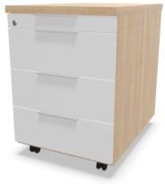 Kontener gabinetowy BRAVO – funkcjonalność w eleganckiej formie Kontener gabinetowy BRAVO to stylowe i funkcjonalne uzupełnienie biurka z tej samej kolekcji. Łączy nowoczesny, minimalistyczny design z praktycznymi rozwiązaniami do codziennej pracy. Wyposażony w cztery szuflady, w tym jedną zamykaną na kluczyk, zapewnia wygodne przechowywanie dokumentów i niezbędnych akcesoriów. Metalowe prowadnice z cichym domykiem oraz zamek centralny z blokadą wysuwu wielu szuflad zwiększają komfort i bezpieczeństwo użytkowania. Dzięki mobilnej podstawie na kółkach z blokadą, kontener można łatwo przestawić w dowolne miejsce – bez utraty stabilności. To doskonałe połączenie estetyki i funkcjonalności w jednym, kompaktowym meblu. Specyfikacja techniczna Metalowe szuflady z cichym domykiem: Wszystkie szuflady wykonane są z metalu i wyposażone w system cichego domyku, co zapewnia komfort codziennego użytkowania. Górna szuflada pełni funkcję piórnika i jest zamykana na zamek centralny z blokadą wysuwu więcej niż jednej szuflady naraz – to rozwiązanie zwiększa bezpieczeństwo dokumentów. Solidna konstrukcja z płyty melaminowanej: Korpus kontenera wykonany został z trójwarstwowej płyty wiórowej, melaminowanej obustronnie – grubość wieńców i półek to 25 mm, a pozostałych elementów 18 mm. To gwarancja trwałości, estetyki i odporności na codzienne użytkowanie. Fronty z połyskiem lub matem – dopasuj styl do wnętrza: Fronty szuflad kontenera BRAVO wykonano z płyty Acrylux – materiału cenionego za trwałość oraz elegancki wygląd. Dostępnych jest aż 7 wariantów w wysokim połysku oraz 5 matowych, co pozwala na idealne dopasowanie mebla do charakteru gabinetu – od klasycznej elegancji po nowoczesny minimalizm. Stylowe uchwyty – subtelny akcent designu: Każda szuflada wyposażona jest w wyrafinowane uchwyty o rozstawie 128 mm i długości 152 mm, które dodają całości lekkości i nowoczesnego wyrazu. Dostępne są w dwóch eleganckich kolorach: klasycznej czerni lub szlachetnym srebrze – wybierz ten, który najlepiej dopełni styl Twojego biura. W skład kolekcji BRAVO wchodzą: Biurko gabinetowe BRAVO Komoda gabinetowa BRAVO Stół konferencyjny BRAVO Szafa gabinetowa BRAVO Zobacz powiązane produkty poniżej i stwórz spójną, funkcjonalną przestrzeń biurową. Zorganizowana przestrzeń w dobrym stylu – dlaczego warto wybrać kontener BRAVO? ✅ Pojemne 4 szuflady – w tym zamykana na klucz i piórnikowa ✅ Nowoczesny design dopasowany do biurka z tej samej kolekcji ✅ Cichy domyk i blokada bezpieczeństwa ✅ Wytrzymała płyta melaminowana i fronty Acrylux ✅ Możliwość wyboru koloru uchwytów ✅ Estetyczne i funkcjonalne uzupełnienie gabinetu Praktyczne dopełnienie Twojego biura Kontener gabinetowy BRAVO to nie tylko praktyczne miejsce do przechowywania, ale również spójny element nowoczesnej aranżacji biura. Doskonale uzupełnia biurko z kolekcji BRAVO, wprowadzając do wnętrza porządek, funkcjonalność i estetykę. Postaw na jakość, która się opłaca – każdego dnia.