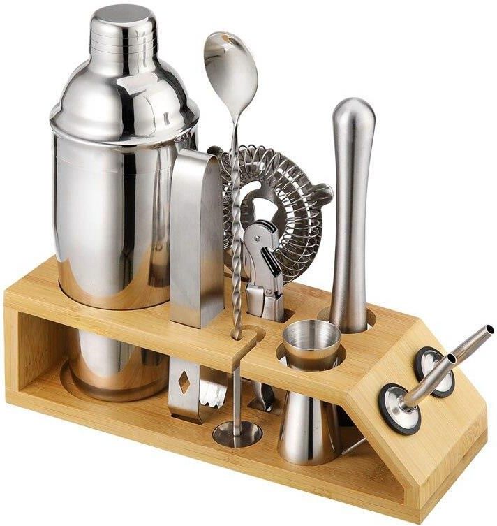Zestaw barmański do drinków BRADFORD - 10 elementów Przeznaczenie: tworzenie wyśmienitych drinków i napojów | Kolor: chromowany Jeśli chcesz podarować sobie lub komuś wyjątkowy prezent, to dobre miejsce. Zestaw barmański Bradford składa się ze starannie wykonanego, bambusowego stojaka i dziewięciu …