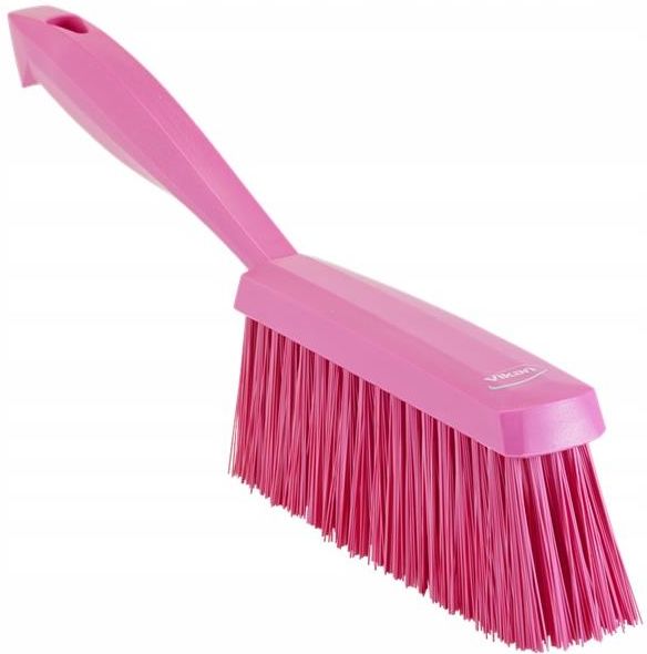 VIKAN 45894 Zmiotka ręczna z uchwytem, średnia, długość 330mm, czerwona Poręczna i skuteczna Ręczna zmiotka z gładkim, ergonomicznym uchwytem oraz średniej twardości szczeciną, przeznaczona do usuwania wilgotnych lub średnich cząsteczek, takich jak np. cukier, czekolada, okruchy ciast, obierki warzyw, ze stołów i blatów. Często stosowana wraz z szufelką, jako zmiotka podłogogowa. Doskonale sprawdzi się zarówno w restauracji, zakładzie produkcyjnym, a także w domu. Odporna na działanie temperatur do +121°C. Informacje o produkcie Producent: Vikan Oznaczenie producenta: 45894. Długość: 330 mm, Szerokość: 35 mm, Wysokość: 110 mm, Długość włosia: 50 mm, Waga produktu: 0,17 kg. Kolor: czerwony. Kod magazynowy: Z043414