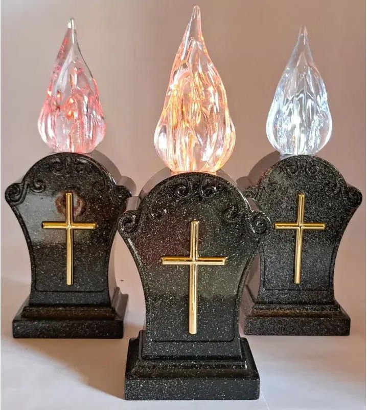 Znicz Solarny Led Żywy Pomarańczowy Płomień Dekoracyjny Czarny Z Krzyżykiem Oława