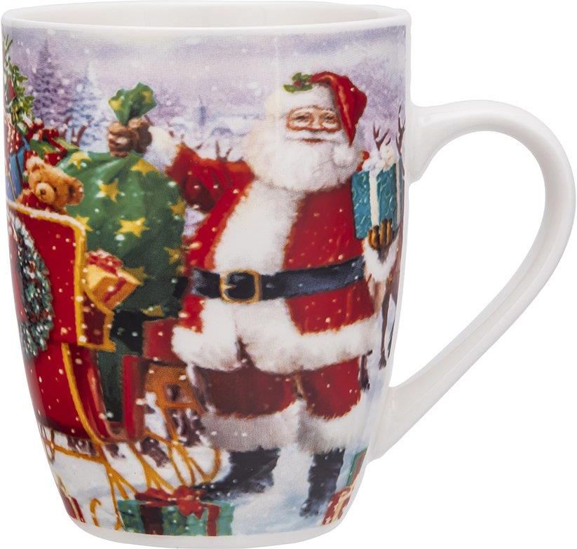 Altom Gwiazdor kubek baryłka 340 ml 1 sztukaKubek z motywem wesołego Mikołaja przygotowującego sanie pełne prezentów doskonale oddaje klimat zimowych dni i świątecznej atmosfery. Jego pojemny, baryłkowaty kształt sprawia, że świetnie sprawdza się do podawania gorących napojów, takich jak herbata, aromatyczna kawa czy gorąca czekolada.Wykonany z porcelany, łączy estetykę z funkcjonalnością, dzięki czemu nadaje się do codziennego użytku w okresie świątecznym. Kolorowa, bogata w detale grafika wprowadza w zimowy nastrój, przywołując skojarzenia z ciepłem i radością świątecznych chwil.