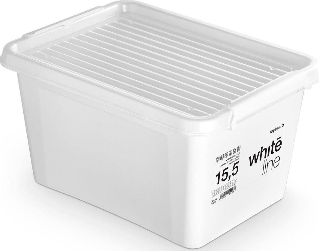 WHITELINE BOX 15,5 L firmy ORPLAST wykonany został z wysokiej jakości tworzywa sztucznego nie zawierającego Bisfenolu A (BPA FREE), dzięki czemu jest bezpieczne dla dzieci. Pojemnik z uchwytami jest w kolorze białym, natomiast pokrywa jest przezroczysta z falowaną fakturą. Pokrywa pojemnika zamykana jest dzięki dwóm uchwytom. Pojemnik ma szerokie zastosowanie świetnie nadaje się do przechowywania drobnych przedmiotów, zabawek, obuwia, a nawet dokumentów. Pojemnik przeznaczony jest do użytku w temperaturach od - 30°C do + 90°C. Pojemnik może być używany do kontaktu z żywnością. Bezpieczny dla środowiska, podlega recyklingowi. W zestawie pudełko wraz z pokrywą. Wymiary pojemnika: długość: 39 cm, szerokość: 29 cm, wysokość: 21,5 cm Pojemność: 15,5 L Materiał: tworzywo sztuczne Kolor: biały / przezroczysty Producent: ORPLAST