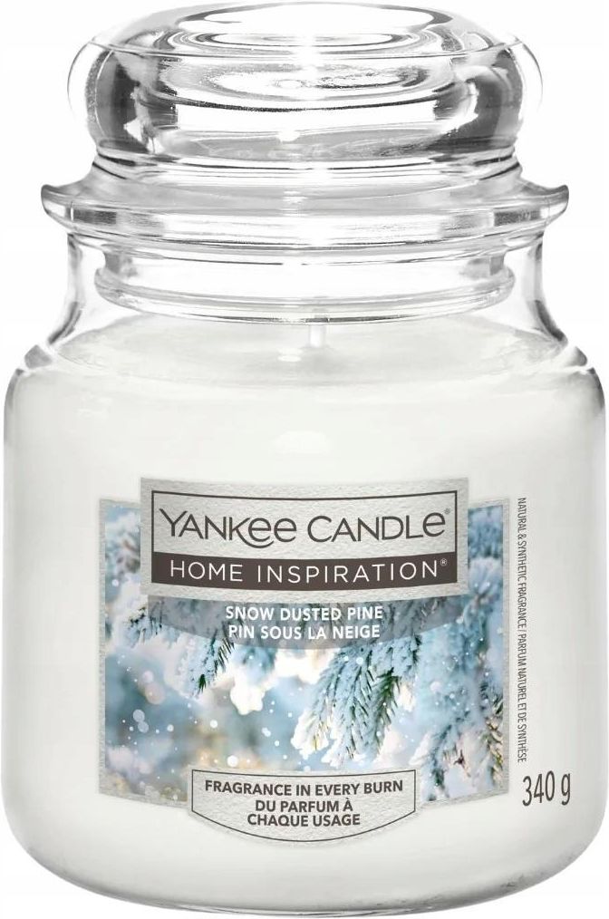 HI świeca średnia SNOW DUSTED PINE OPIS PRODUKTU Zimowy spacer po lesie – zapach świeżego śniegu dopełniony nutą eukaliptusa i drzewa cedrowego OPIS ZAPACHU Yankee Candle® Home Inspiration® to wysokiej jakości zapachy w przystępnej cenie. Średni słoik z kolekcji Home Inspiration® dopełni aranżację Twojego wnętrza swoim kształtem i zapachem. To, co wyróżnia świece Home Inspiration® to wysokiej jakości parafinowy wosk marmurkowy, bawełniany knot oraz autentyczne zapachy. Gramatura świecy to 340g, a jej czas palenia to 40-60 godzin. Świece to idealny dodatek jesiennych wieczorów jak i świetny upominek dla bliskich. NUTY ZAPACHOWE Nuty górne: Jodła, Eukaliptus, Rozmaryn Nuty środkowe: Kwiaty śnieżyczki Nuty dolne: Drzewo cedrowe, Drzewo sandałowe Yankee Candle® Home Inspiration™ to wysokiej jakości zapachy w przystępnej cenie. Produkty Home Inspiration™ są dedykowane do sprzedaży w dyskontach, drogeriach, marketach budowlanych i innych punktach sieciowych, dzięki czemu znajdziesz je na wyciągnięci ręki podczas codziennych zakupów!