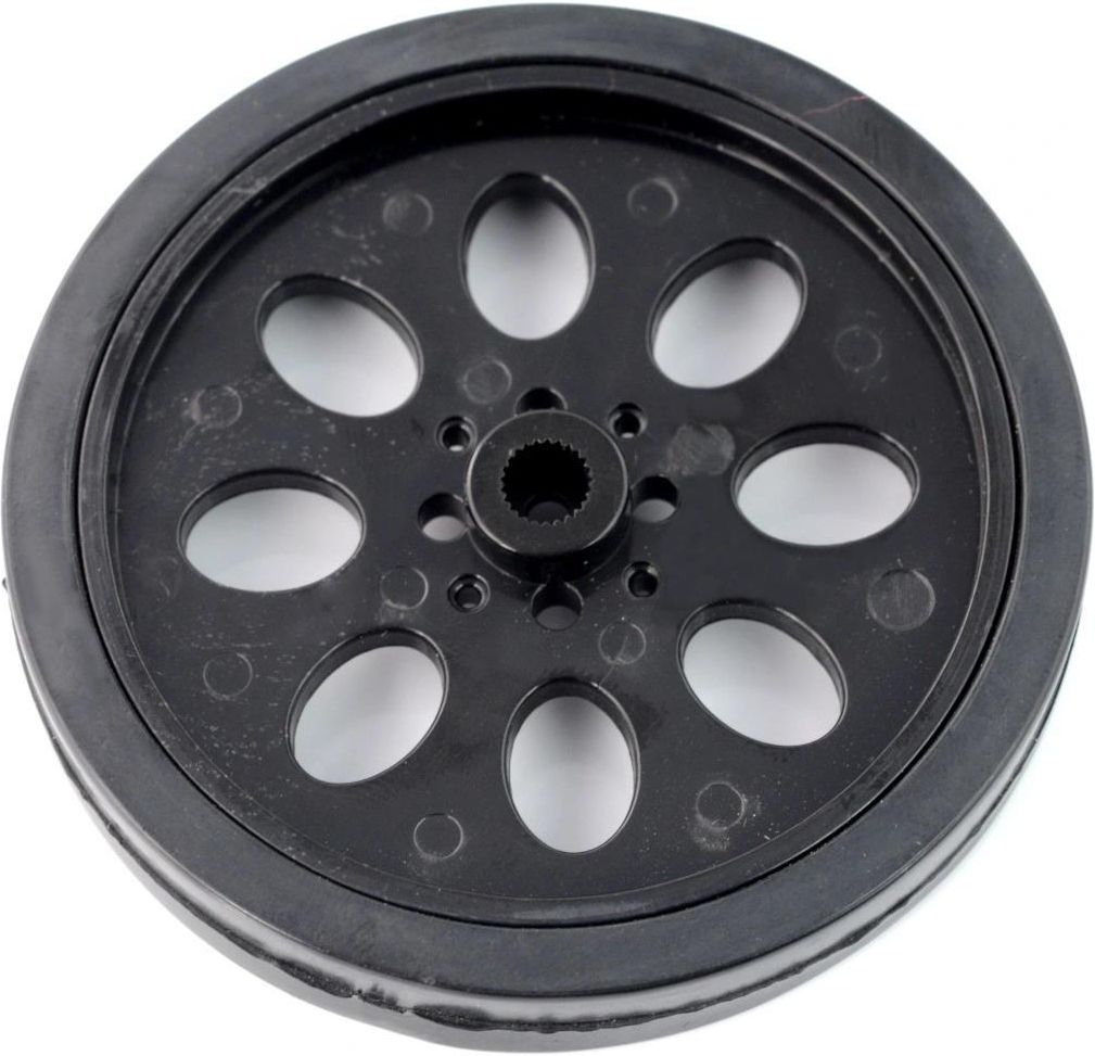 Koło 60mm do serwa FS90R 360 - koło do budowy robotów Czarne koła do budowy robota arduino. Pasuje do do serwa FS90R 360 Rozwiązanie do budowy napędu dla małych robotów. Koła mają silikonowe opony.