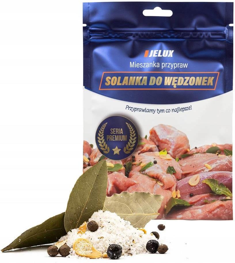 MIESZANKA PRZYPRAW DO PEKLOWANIA SOLANKA NASTRZYKIWANIA MIĘS WĘDLIN SZYNKI Jakość produktu Mieszanka przyprawowa do sporządzania solanki "Jelux" To naturalne składniki, które pozwolą Ci na przygotowanie pysznych i aromatycznych szynek, polędwiczek, schabów lub boczków. Solanka do Wędzonek "Jelux" to profesjonalnie przygotowana mieszanka przypraw i soli, stworzona specjalnie do przygotowywania domowych wędzonek. Dzięki niej, Twoje mięsa zyskają wyjątkowy smak, aromat i soczystość, charakterystyczne dla tradycyjnych wędzonek. Specyfikacja 172 g mieszanki na 1,5l wody pozwoli Ci na peklowanie ok. 3 kg mięsa. Zalecamy dodać 3g maggi. Skład: peklosól (sól spożywcza, substancja konserwująca: azotyn sodu), czosnek, cukier, ziele angielskie, jałowiec, pieprz czarny, liść laurowy. Przechowywać w suchym i zacienionym miejscu, w szczelnie zamkniętych opakowaniach. Sposób przygotowania Do odpowiednio dobranego naczynia wlewamy 1,5L wody, dodajemy gotową mieszankę, przyprawę maggi i mieszamy do całkowitego rozpuszczenia. Do tak przygotowanej solanki dodajemy mięso. Całość przechowujemy w temperaturze 4-8 stopni celcjusza przez około 5-7 dni. W zakładzie używane są: zboża zawierające gluten, seler, soja, dwutlenek siarki.