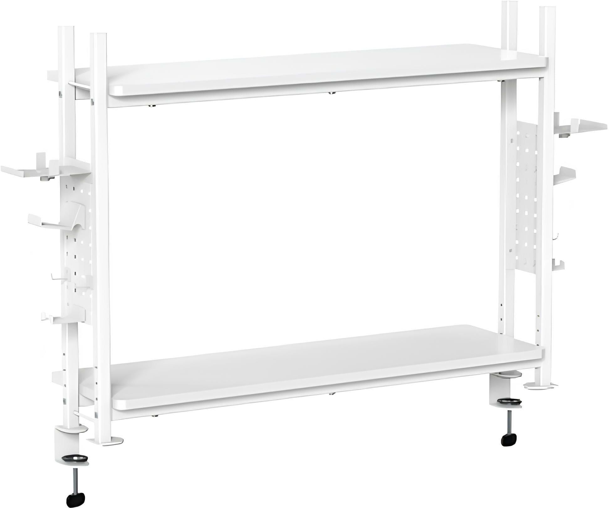 Półka nad biurko dla graczy Spacetronik SPB-120WW_120W aktualnych czasach większość z nas albo sama jest graczem, albo zna kogoś, kto nim jest. Dlatego zapewne jesteśmy zaznajomieni z problemami, z którymi na co dzień mierzą się gracze. Podświetlane klawiatury, słuchawki, kable, dodatkowe monitory, kontrolery do gier czy po prostu pudełka z najnowszymi tytułami. Te wszystkie przedmioty muszą być gdzieś składowane, a jednocześnie chcielibyśmy mieć je zawsze pod ręką. Z pomocą przychodzi Ci wielofunkcyjna półka do biurka Spacetronik SPB-120WW_120. Dzięki niej bez problemu zorganizujesz swoją przestrzeń. Zyskasz dodatkowe miejsce, mając wszystko, co potrzebne wciąż pod ręką.Wielofunkcyjny organizer do biurka Spacetronik SPB-120WW_120Nadstawka do biurka Spacetronik SPB-120WW_120 wyposażona została w 2 pojemne półki. Każda z nich zapewnia udźwig na poziomie 15 kg. Dlatego też bez problemu możesz składować na nich wszystkie najpotrzebniejsze przedmioty. Bez różnicy czy będą to pudełka na gry, książki czy też dokumenty. Co więcej, boki nadstawki zostały w mądry sposób wykorzystane. Zamiast wolnej przestrzeni, po obu bokach zaimplementowane zostały małe tablice perforowane z dodatkowymi akcesoriami, takimi jak: Dwa uchwyty na słuchawki, Dwa uchwyty na pudełka czy też książki, Dwa uchwyty na kontroler typu pad, Cztery wieszaki, na których możesz zawiesić np. kable. Dzięki nim z łatwością znajdziesz odpowiednie miejsce dla swoich przedmiotów.Solidna konstrukcja nadstawki do biurka SPB-120WW_120Półka do biurka SPB-120WW_120 została wykonana z dobrej jakości materiałów. Połączenie stali, tworzywa sztucznego i płyty wiórowej zapewnia odpowiednią wytrzymałość produktu na codzienne użytkowanie. Możesz dzięki temu cieszyć się długim i spokojnym korzystaniem z urządzenia. Dodatkowo nadstawka została pomalowana metodą proszkową. Dzięki temu jest bardziej odporna na korozję. Sam proces malowania jest również zdecydowanie mniej szkodliwy dla środowiska. Co więcej, uchwyty zaciskowe sprawiają, że zamontowanie półki do biurka go nie zniszczy. Także stosując półkę SPB-120WW_120 zadbasz również o bezpieczeństwo swoich innych mebli.Półka nie tylko dla graczyDzięki wspomnianym powyżej uchwytom zaciskowym nadstawkę biurkową możesz z łatwością przenosić z jednego miejsca w drugie. Dlatego, gdy poczujesz taką potrzebę, półkę możesz przetransportować do innego pokoju i biurka. Z nadstawki mogą korzystać również osoby, które nie identyfikują się jako gracze. Produkt zapewnia maksymalny udźwig do 30 kg. Dzięki temu możesz składować na nim również inne przedmioty niż akcesoria dla graczy. Książki, dokumenty czy nawet kosmetyki bez problemu znajdą miejsce dla siebie na półce SPB-120WW_120. Dodatkowo dołączone do zestawu uchwyty zapewnią Ci na jeszcze większą pakowność urządzenia. To z uwagi na ich uniwersalność. Np. uchwyt na pudełka od gier posłużyć może równie dobrze jako uchwyt na książki.Zwiększ swoją produktywność dzięki półce na biurko SPB-120WW_120Spędzając długie godziny, siedząc przy biurku, powinniśmy zadbać o odpowiednią higienę pracy. Jednym z warunków, który musimy spełnić, jest zachowanie porządku przy swoim stanowisku. Czysty, dobrze zorganizowany blat wpłynie pozytywnie na nasze samopoczucie, a tym samym również na naszą produktywność. Na szczęście jesteś w stanie w bardzo prosty sposób to osiągnąć. Twoim kluczem do lepszej produktywności może okazać się organizer na biurko Spacetronik SPB-120WW_120. Dzięki uchwytom zaciskowym bez problemu zamontujesz go nad biurkiem. Tym samym zyskasz miejsce, które normalnie zajmowałyby Twoje przedmioty na blacie.Organizer biurka, który dostosujesz do swoich potrzebW trosce o Twoją wygodę półki w nadstawce możesz zamontować w obu kierunkach. Dzięki temu będziesz mógł dopasować do niej, chociażby uchwyt do monitora, tak by spełniał Twoje wymagania. Dodatkowo półki nadstawki możesz zamontować na 4 różnych poziomach wysokości. Ustawisz je tak, by były w możliwie, jak najwygodniejszym położeniu, byś mógł poczuć pełnie komfortu.Jak zamontować półkę bez widocznych zamocowań?Uchwyty zaciskowe, za pomocą których montujesz półki do biurka, nie wymagają wiercenia. Wystarczy tylko, że dokręcisz je w taki sposób, by dopasować je do odpowiedniej grubości blatu. Mechanizm odpowiadający za regulację zacisków znajduje się pod blatem biurka. W żaden sposób nie będzie się rzucał w oczy.Właściwości Kolor Matowy biały Bezinwazyjny montaż zaciskowy Wymiary: 1037×300×834 mm Wykonana z połączenia stali, tworzywa sztucznego i płyty wiórowej Udźwig do 30 kg Możliwość szybkiego montażu i demontażu Dopasowany do wielu grubości blatów (0-50 mm) Uniwersalny – nie tylko dla graczy 2 półki 2 uchwyty na słuchawki 2 uchwyty na pudełka/książki 2 uchwyty na pady 4 wieszaki Grubość półek: 18 mm Nie rzucające się w oczy mocowanie 4 poziomy ustawienia wysokości