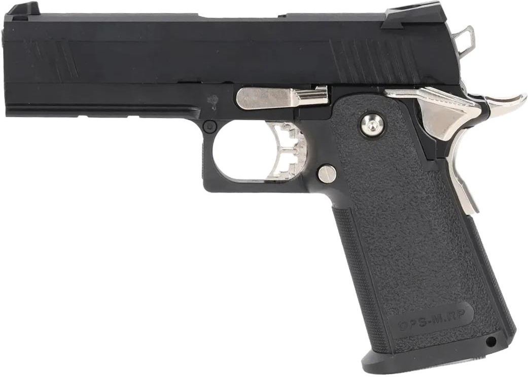 Gazowa replika pistoletu zasilana Green Gasem, wykonana z połączenia metalu i wytrzymałego tworzywa. Zastosowany system Blow-Back zapewnia realistyczne działanie, a solidna konstrukcja sprawia, że replika pewnie leży w dłoni. Replika jest zgodna ze standardem Hi-Capa TM, dzięki czemu pasują do niej części, magazynki i akcesoria przeznaczone dla tej platformy.