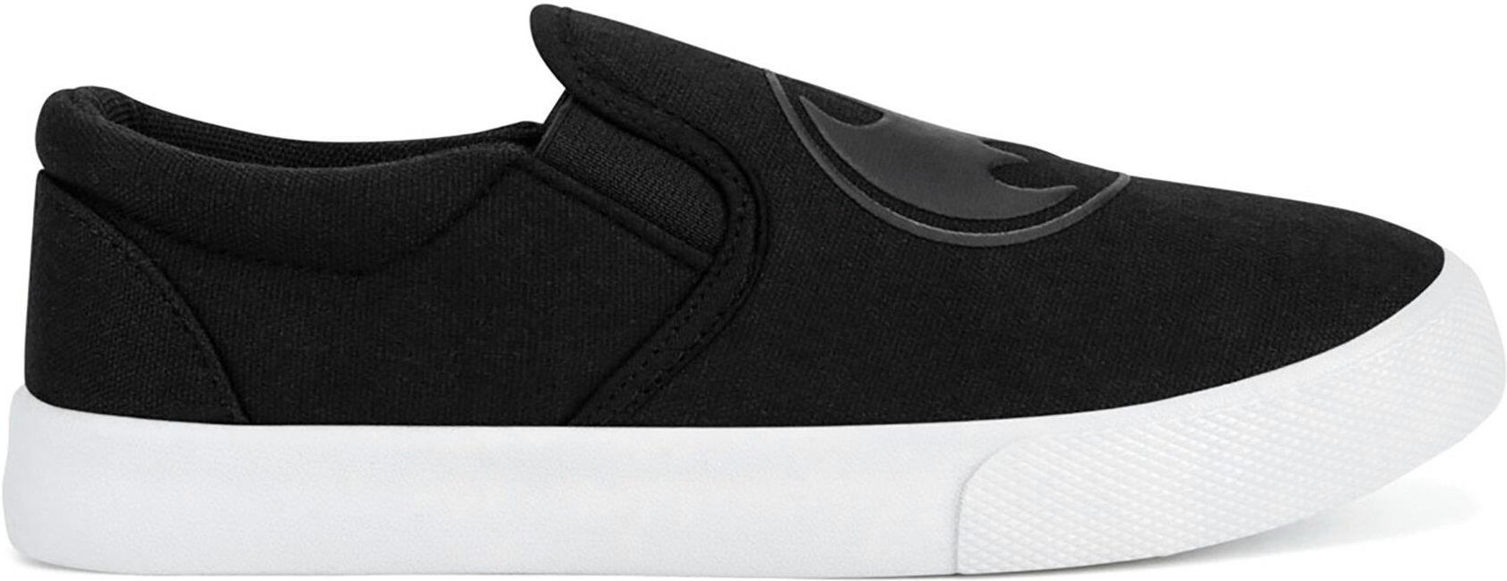 Twoje dziecko pokocha te czarne trampki Batman! Wykonane z materiału włókienniczego, łączą komfort i wytrzymałość, co czyni je idealnym wyborem na co dzień. Wsuwane zapięcie sprawia, że zakładanie i zdejmowanie butów jest szybkie i łatwe, co ucieszy małych superbohaterów. Niska cholewka i płaska podeszwa zapewniają wygodę i swobodę ruchu, idealnie wpisując się w casualowy styl, który świetnie pasuje do różnych dziecięcych stylizacji. Te trampki to nie tylko obuwie, to prawdziwa gratka dla fanów Batmana, która doda charakteru każdemu strojowi! Wyjdź z domowej jaskini i podbij swoje Gotham City w towarzystwie jednego z najbardziej popularnych superbohaterów! W kolekcji marki Batman w CCC znajdziesz buty oraz akcesoria z wizerunkiem człowieka nietoperza, które dodadzą charakteru każdej stylizacji. W ofercie marki dostępne są sneakersy czy klapki dla dorosłych oraz wyjątkowe obuwie dla najmłodszych, których fascynuje świat z komiksów DC. Oprócz efektownych butów, które mają migające diody, odwołujące się do charakterystycznego sygnału przywołania Batmana, w kolekcji znajdują się też skarpetki, plecaki czy piórnik. Zarówno Ty, jak i Twoje dziecko możecie wyruszyć w wyjątkową podróż razem ze swoją ulubioną postacią. Zacznijcie od CCC!