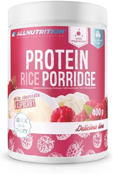 SMACZNA MĄCZKA RYŻOWA W PROSZKU JAKO ZAMIENNIK OWSA Bezglutenowa baza z 80% WPC, bez dodatku cukru, wzbogacona magnezem dla aktywnego stylu życia Pyszna owsianka na bazie mąki ryżowej i białka serwatkowego WPC 80% Mąka ryżowa jest bezglutenowa Dostępna w dwóch unikalnych smakach: Biała Czekolada-Malina, Mleczna Czekolada Ani gram dodanego cukru Wzbogacona magnezem Idealna jako deser lub przekąska Smak dzieciństwa! Dołącz do tysięcy fanów naszych dietetycznych owsianek! ALLNUTRITION PROTEIN RICE PORRIDGE to smaczny deser na bazie mąki ryżowej i koncentratu białka serwatkowego (WPC). Dodatkowo, PROTEIN RICE PORRIDGE została wzbogacona magnezem, który wspiera prawidłowe funkcjonowanie mięśni i przyczynia się do efektywnej syntezy białek. Mąka ryżowaPodstawowa mąka ryżowa powstaje przez mielenie wysokiej jakości ziaren ryżu. Jej korzystny wpływ na zdrowie i wartości odżywcze są szczególnie doceniane przez osoby borykające się z zaparciami i wysokim poziomem cholesterolu. Charakterystyka mąki ryżowej: Jest doskonałym zamiennikiem mąki pszennej w ciastach, muffinach i naleśnikach. Wyśmienita baza do budyniów, klusek i wypieków, idealna także do zagęszczania zup i sosów. Jest bezglutenowa i szeroko wykorzystywana na całym świecie. W kuchni azjatyckiej stanowi kluczowy składnik różnych dań i deserów – na przykład z mąki ryżowej robi się dango, gotowane na parze kluseczki nabite na patyczki. Mąka ryżowa to także dobre źródło witamin z grupy B, magnezu, żelaza i cynku. Czym jest koncentrat białka serwatkowego? Koncentrat białka serwatkowego pozyskiwany jest z mleka poprzez procesy mikrofiltracji lub ultrafiltracji. WPC wyróżnia się na tle innych białek (zwłaszcza roślinnych, kazeinowych czy pochodzących z mięsa i jaj) wyjątkowo wysoką wartością odżywczą, dzięki bogactwu egzogennych aminokwasów (EAA), szczególnie aminokwasów rozgałęzionych (BCAA). ALLNUTRITION PROTEIN RICE PORRIDGE została wzbogacona magnezem, który korzystnie wpływa na układ nerwowy oraz mięśnie. Pomaga chronić organizm przed stresem, działa uspokajająco i przywraca równowagę psychiczną. Podczas zmęczenia, osłabienia czy w okresach wzmożonego wysiłku fizycznego i psychicznego dodaje sił. Pobudza mechanizmy obronne organizmu, chroni mięsień sercowy przed niedotlenieniem oraz pomaga regulować ciśnienie krwi. SPOSÓB UŻYCIA (1 porcja = 30 g) Wymieszaj 30 g (4 łyżki) dokładnie i energicznie z 100 ml gorącej wody lub mleka. PRZECHOWYWANIE Przechowywać w temperaturze pokojowej, chronić przed bezpośrednim działaniem światła słonecznego, w szczelnie zamkniętym pojemniku. OSTRZEŻENIE Spożyć natychmiast po przygotowaniu. Zawiera naturalnie występujące cukry. Nie spożywać w przypadku nadwrażliwości na którykolwiek ze składników. Może zawierać jaja, orzechy, orzeszki ziemne, zboża zawierające gluten oraz ich pochodne.