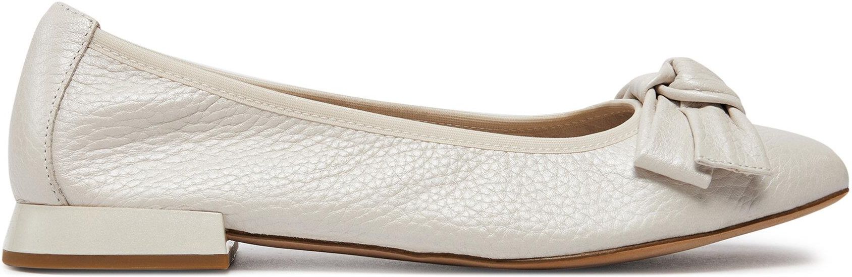 Balerinki Model : 22105-42 136 PEARL PERL DEE Producent : CAPRICE (Niemcy) balerinki w kolorze ecru z perłowym połyskiem z niezwykle miękkiej i elastycznej naturalnej skóry licowej z jelenia na płaskim obcasie wys. 1,8 cm wyposażone w komfortowe amortyzujące skórzane wkładki MEMOTION idealnie …