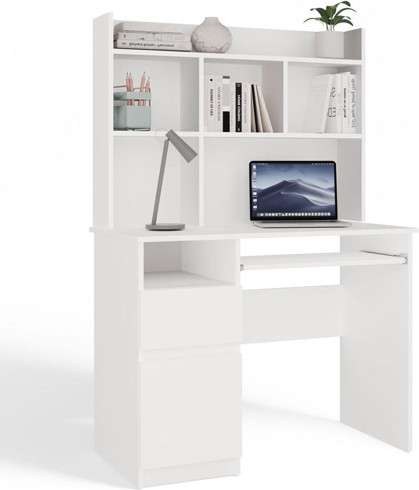 Biurko Porto Lewe Z Nadstawką Biel Mat Szuflada Półki Do Biura Pokoju (MMPBPORPORL+NDSTBIA) Olesno