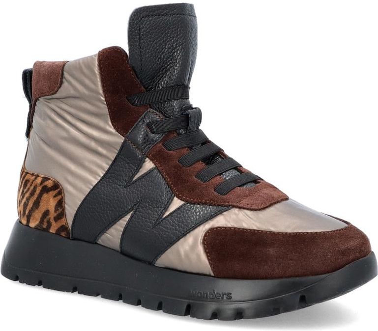 Poznaj najnowszy model sneakersów od WONDERS - hiszpańskiej marki, która wyróżnia się estetyką i niecodziennym designem. Sneakersy wykonane są z połączenia zamszowej skóry i brązowych tekstyliów. Ten nowoczesny model wyróżnia się piętą ze zwierzęcym nadrukiem, logo na zewnętrznej stronie i elastycznym sznurowaniem. Tylny uchwyt ułatwia i zapewnia idealne dopasowanie. Dodatkowo w ich podeszwie zastosowano technologię WondersFly™, która zapewnia nieporównywalną lekkość i niezwykły komfort. Wyjmowana wkładka MemoryGel idealnie dopasowuje się do kształtu stopy, zapewniając wyjątkowy komfort przy każdym kroku. Idealne do codziennego noszenia, nadając stylowy i oryginalny wygląd! Sportowy charakter buta podkreślają charakterystyczne dla sneakersów wykończenia, wyższa cholewka oraz elastyczne sznurowanie. Buty WONDERS są od wielu lat wyjątkowo cenione przez nasze klientki, do ich największych zalet możemy zaliczyć oryginalne wzornictwo, doskonałe wykonanie i użycie wysokojakościowych materiałów, takie podejście gwarantuje zadowolenie z zakupu. To idealne obuwie dla tych, którzy cenią zarówno wygodę, jak i modny wygląd. Koniecznie sprawdź całą kolekcje sneakersów dostępną na naszej stronie!