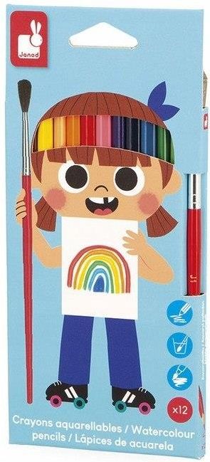Janod Kredki Akwarelowe Z Pędzelkiem 12 Kolorów 3+ J07415 Olesno