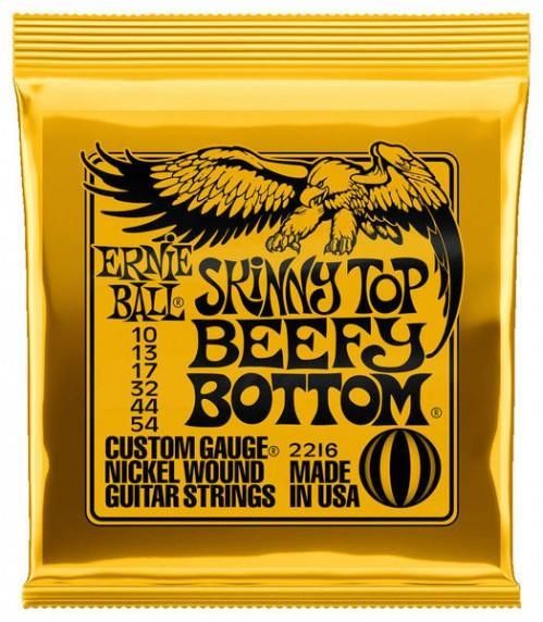 Skinny Top Beefy Bottom . Zestaw 6 strun do gitary elektrycznej z serii SLINKY NICKEL WOUND. Grubości: .010, .013, .017, .032, .044, .054