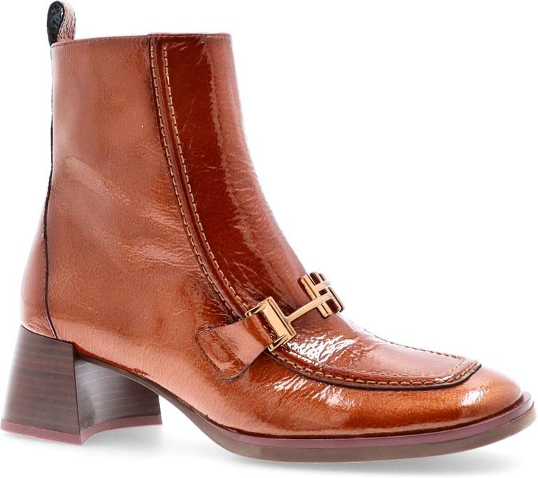 Lakierowane botki na słupku - HISPANITAS HI243727 BRĄZOWE Olesno
