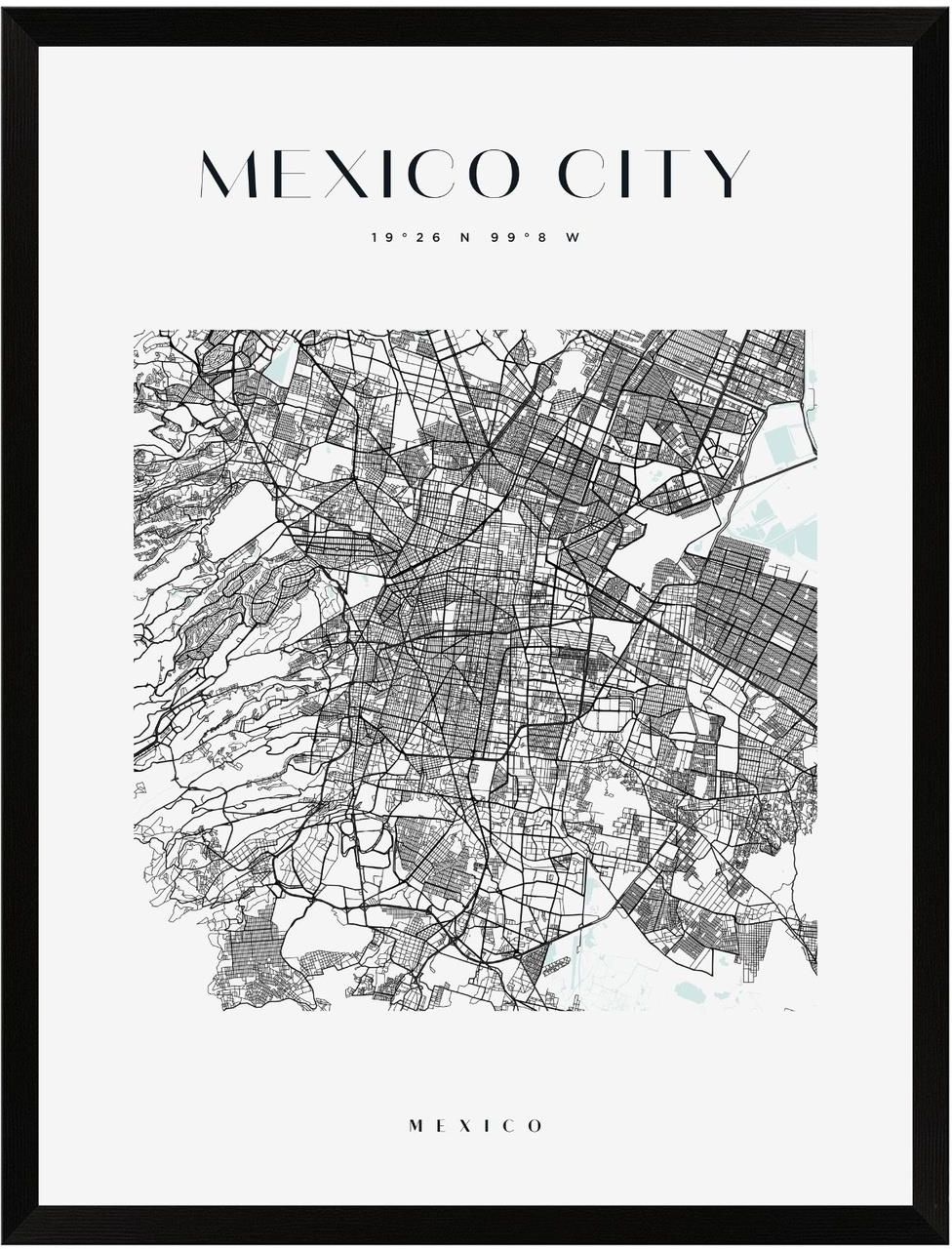 Mpink Plakat Mapa Miasta Meksyk Kwadrat 24x30 Cm + Ramka Czarna 9685 Olesno
