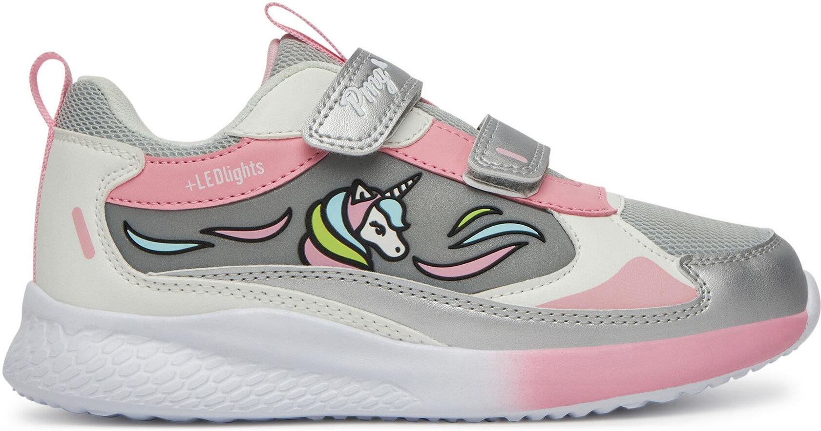 Magiczne sneakersy dla dziewczynki od marki Primigi to połączenie stylu, wygody i odrobiny magii! Wykonane z połączenia materiału tekstylnego i wysokogatunkowego tworzywa syntetycznego, zapewniają trwałość i komfort. Okrągły nosek gwarantuje wygodę podczas noszenia, a zapięcie na rzep pozwala na łatwe i szybkie zakładanie. Największą atrakcją są jednak migające diody, które zachwycą każdą małą miłośniczkę mody i dodadzą butom wyjątkowego uroku. To idealny wybór na co dzień, który sprawi, że każdy krok będzie pełen blasku!