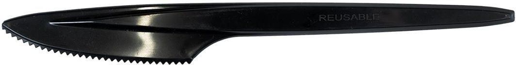 Noże wielorazowe z wytrzymałego tworzywa. 100 sztuk. Czarne wielorazowe noże łączą trwałość, lekkość i wygodę użytkowania. Wykonane z tworzywa sztucznego, stanowią praktyczne rozwiązanie podczas organizacji przyjęć i spotkań plenerowych. Cechy produktu: - solidne i lekkie - wykonane z wytrzymałego materiału, odporne na złamania, wygodne w użytkowaniu, - wielokrotnego użytku - możliwość mycia w zmywarce nawet 125 razy, co czyni je doskonałą alternatywą dla jednorazowych sztućców, - funkcjonalna budowa - ostrze ząbkowane umożliwia łatwe krojenie różnorodnych potraw, - estetyczny wygląd - czarny kolor sprawdzi się zarówno na codziennym stole, jak i podczas innych okazji, - uniwersalne zastosowanie - idealne na grill, garden party, pikniki, imprezy plenerowe oraz przyjęcia okolicznościowe. Dane techniczne: - długość noża: 18 cm, - materiał: tworzywo sztuczne wielokrotnego użytku, - kolor: czarny, - ilość w opakowaniu: 100 sztuk.